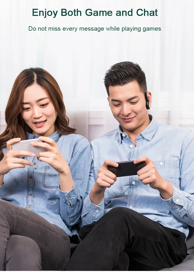 1.Bluetooth headset without earplugs, not into ear, wearing no pain.