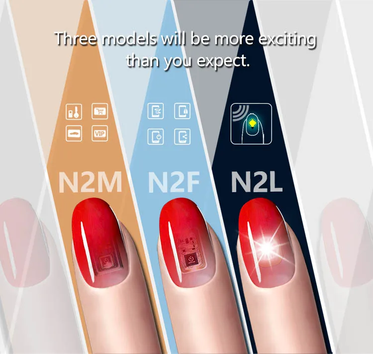 N2F smart nail встроенный новый чип NFC полупроводников N X P с эксклюзивным применением, поэтому он может работать с широким спектром функций, позвольте вам немедленно стать модным плеером, который может играть с новейшими технологиями.