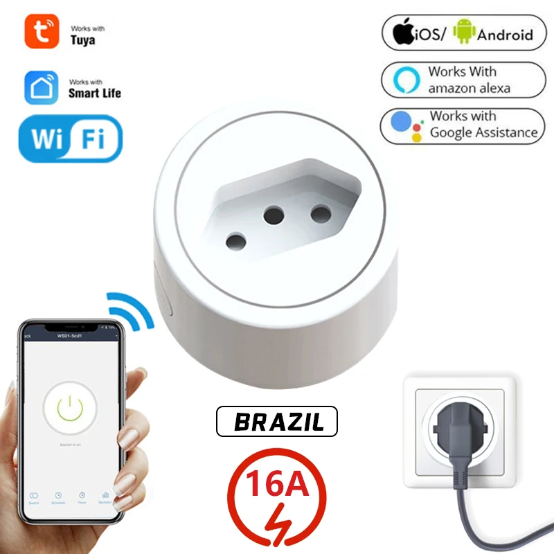 Бразильская умная розетка 16А WIFi умная вилка с приложением Tuya Smart Life монитор питания таймер Голосовое управление работа для Alexa Google Home