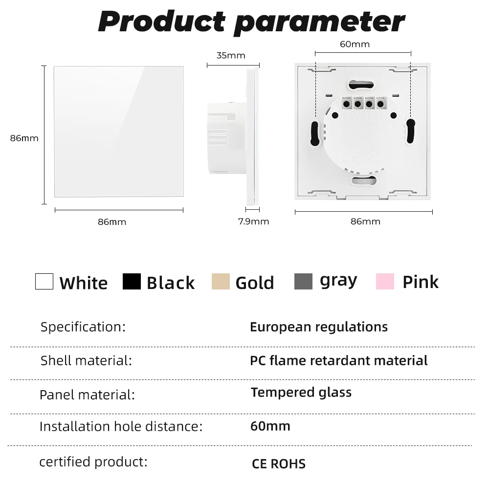 1. Это просто пустой переключатель, без сенсорной функции, без функции Wi-Fi, просто используется для украшения избыточной коробки проводки