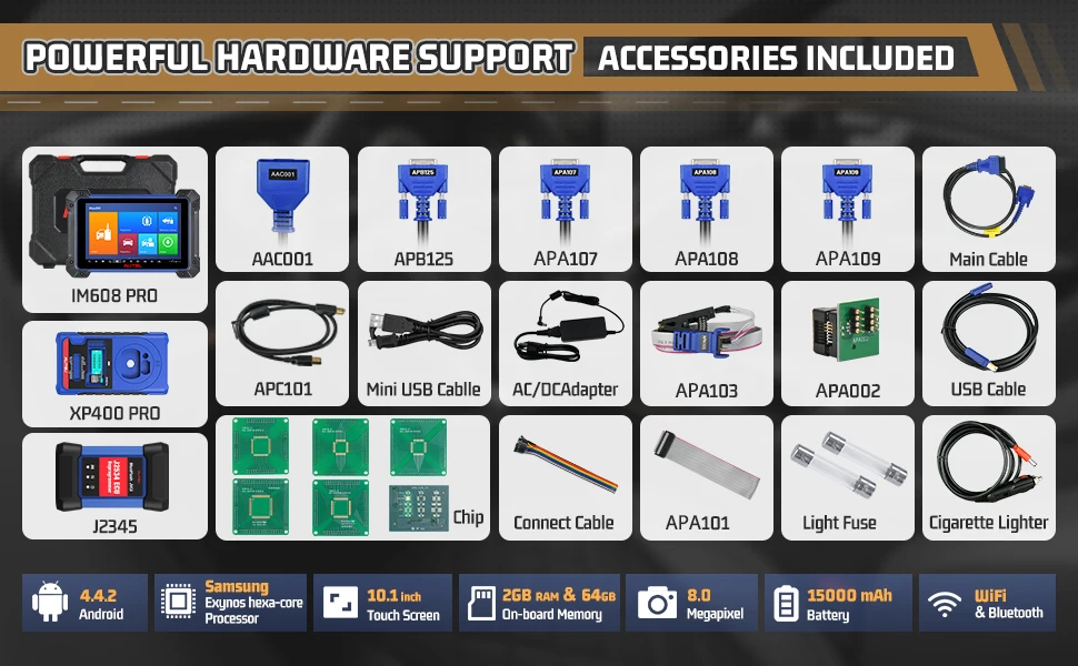 Диагностический уровень всех систем: IM608 PRO имеет такие же диагностические возможности, как MK908, MK908P. Он может получать доступ и сканировать все доступные электронные системы для проведения диагностики уровня OE, включая чтение и четкие коды, Просмотр живого пара данных, информацию о ECU, выполнение различных активных тестов, согласование и адаптация, кодирование ECU и т. Д.