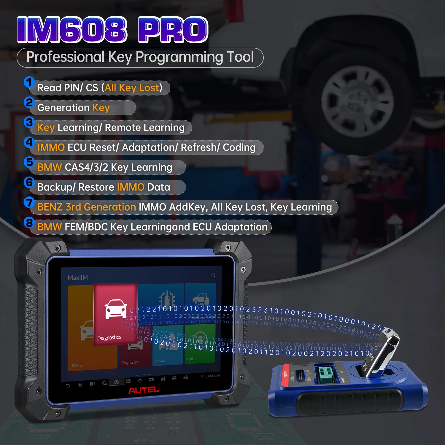 Autel IM608 Pro key programming, diagnostic & service Все-в-одном сканирующий инструмент может работать над 80 американскими, европейскими и азиатскими автомобилями и моделями для сканирования всех доступных систем для проведения диагностики, услуги и IMMO и ключевые функции программирования, включая GM, Chrysler, Ford, Mercedes Benz, BMW, VW, Audi, Skoda, Jaguar, Jeep, Land Rover, Toyota, Honda, Nissan, Lexus, Kia, Hyundai и т. д.