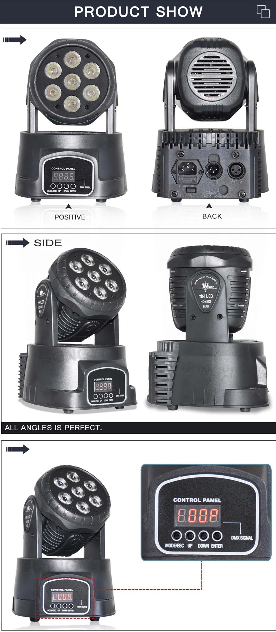 4. Панорамирование 540 ° и наклон 180 ° Широкий угол сканирования, со стробоскопическими эффектами, регулируемая скорость вспышки и угол освещения.
