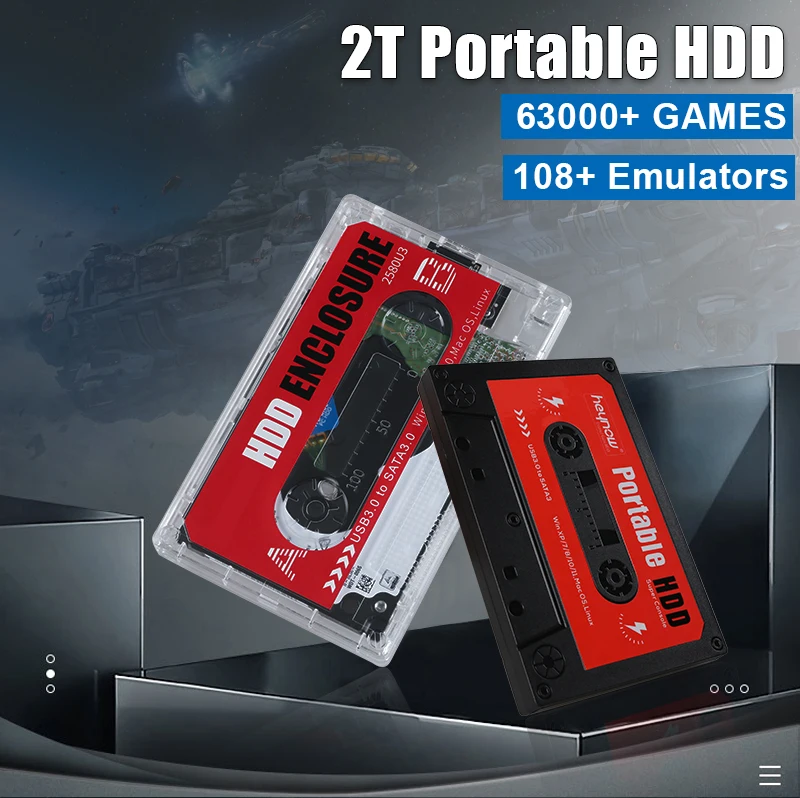 Этот жесткий диск предварительно установлен с 108 игровыми коллекциями и эмуляторами, встроенными 63000 + играми (2 ТБ), включая 5000 + 3D игры, может идеально запускать PS2/WII/WIIU/Sega Saturn/PS1/N64/DC и т. д., если вы хотите больше игр, вы также можете добавить свои собственные игры.