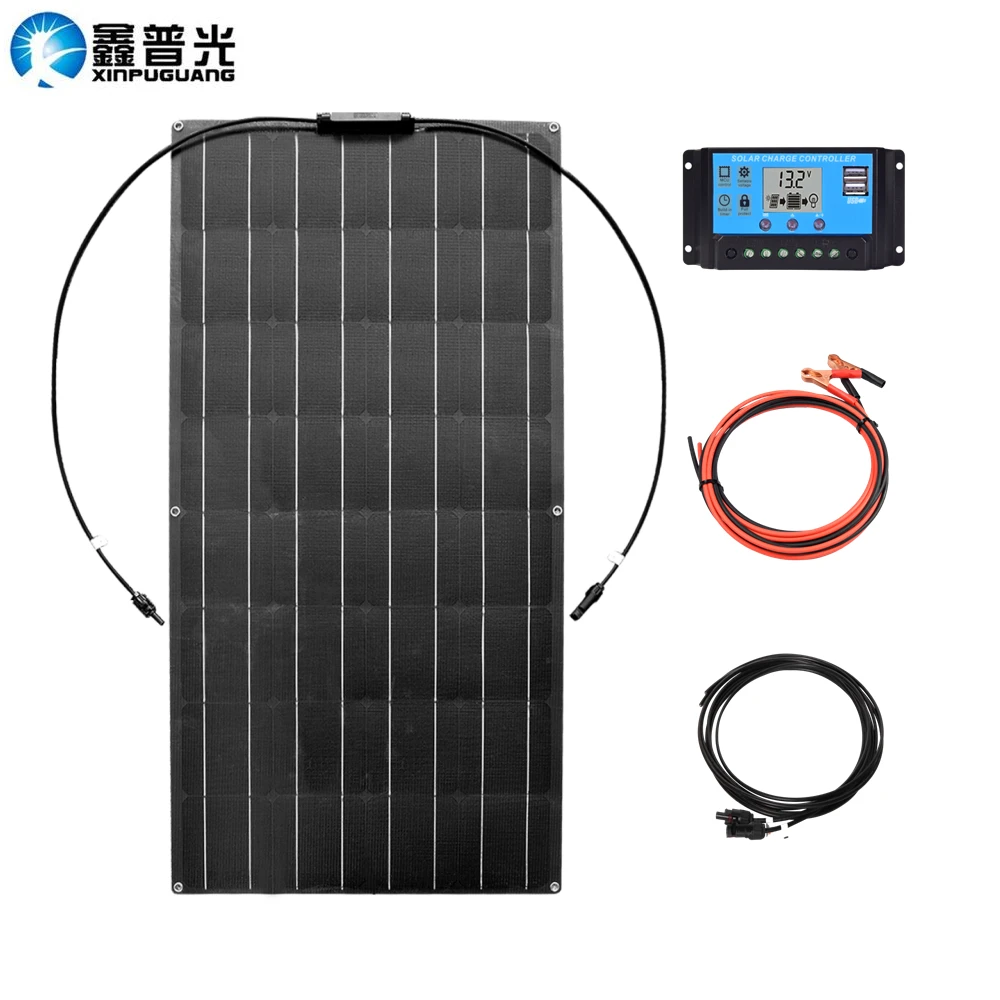 Гибкая солнечная панель ETFE, 200 Вт, комплект, 2 шт., 16 вольт, 100 Вт, солнечная система для автомобиля, RV, лодки, дома, на крыше, фургоны, кемпинг