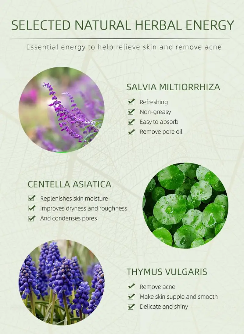 Plant ingredient:Salvia Miltiorrhiza, Centella Asiatica, Thymusvugaris,
