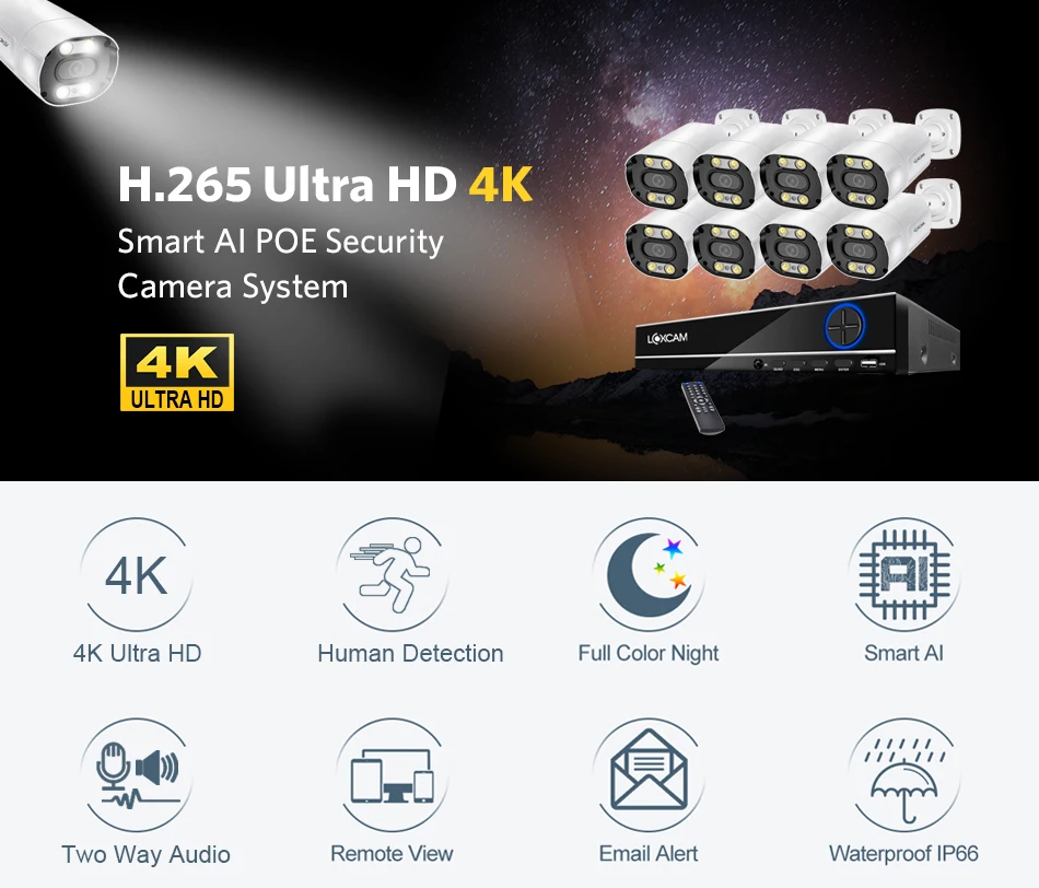 H.265 4K 8.0MP изображение высокой четкости, супер инфракрасное ночное видение, H265 видео
