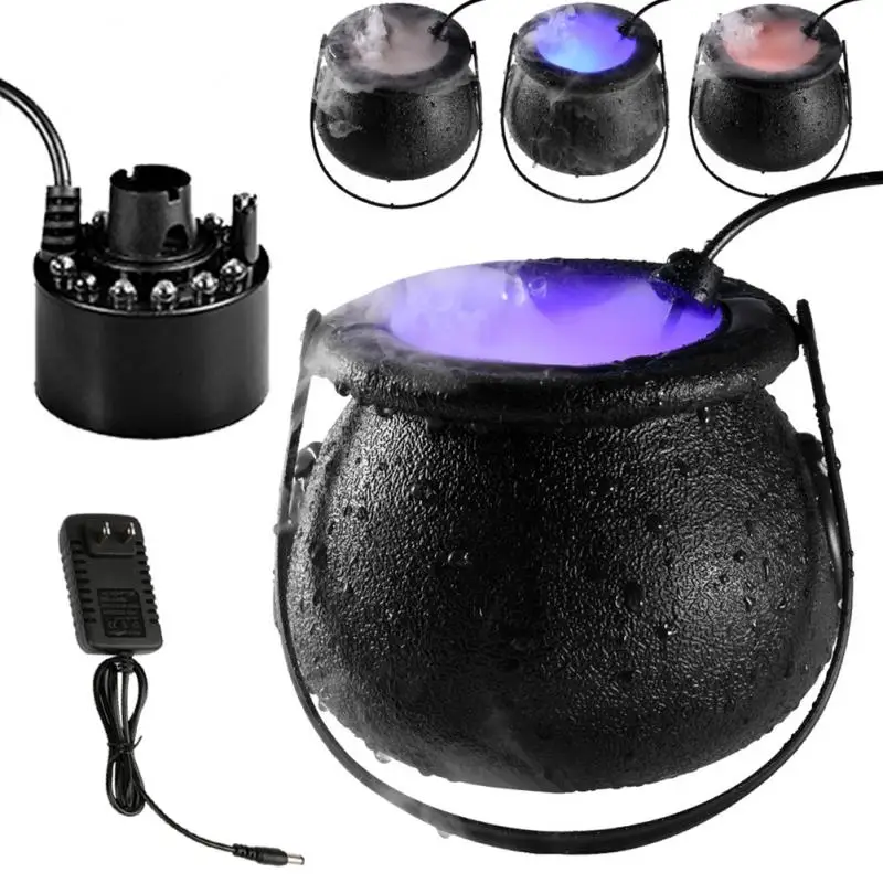 Хеллоуин дым машина с 12 Светодиодный светильник дым туман машина Хэллоуин украшение реквизит Cauldron форма туман производитель аксессуары для дома