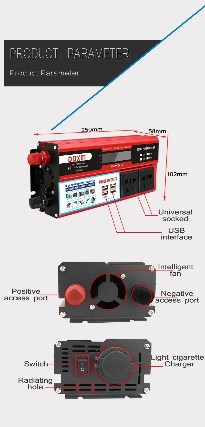 2. Modified sine wave inverters are not applicable to inductive load equipment, feel free to contact us if you need help with choosing model and power.