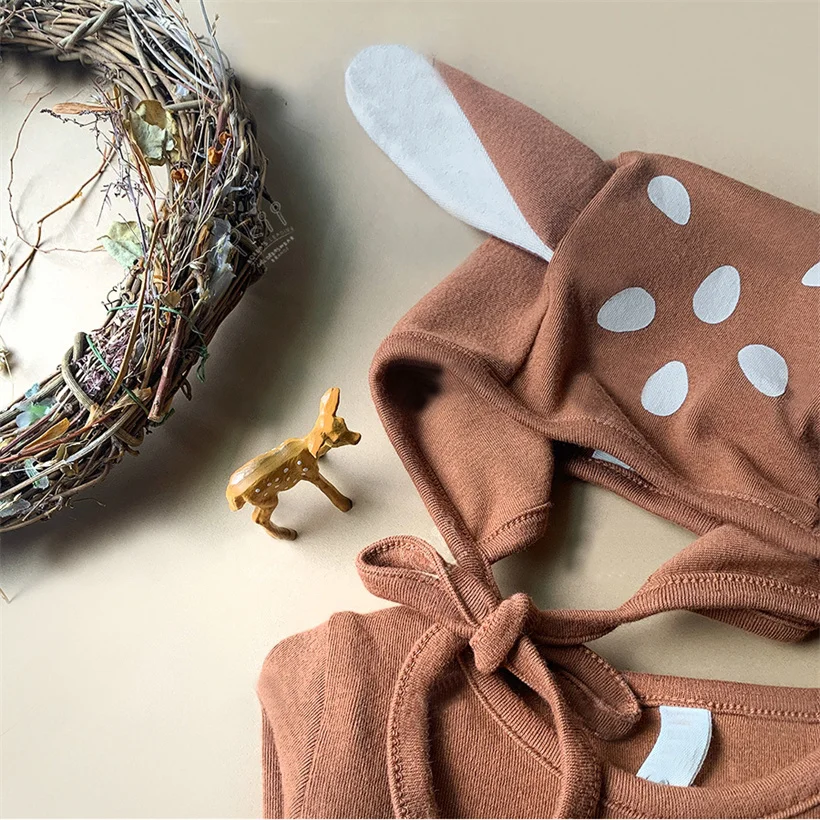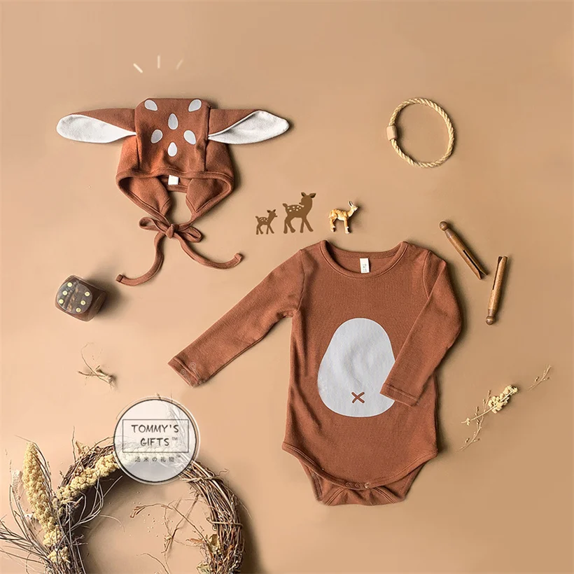 Одежда для малышей; Костюм с рождественским оленем; Комбинезон; Детские Ползунки для новорожденных; Эластичный комбинезон для маленьких мальчиков с шапочкой; Одежда для маленьких девочек