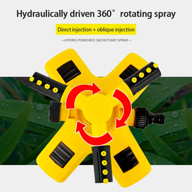 5. Вращение на 360 градусов: Этот водяной разбрызгиватель оснащен питанием от воды, вращение на 360 °, прямое распыление + косое распыление.