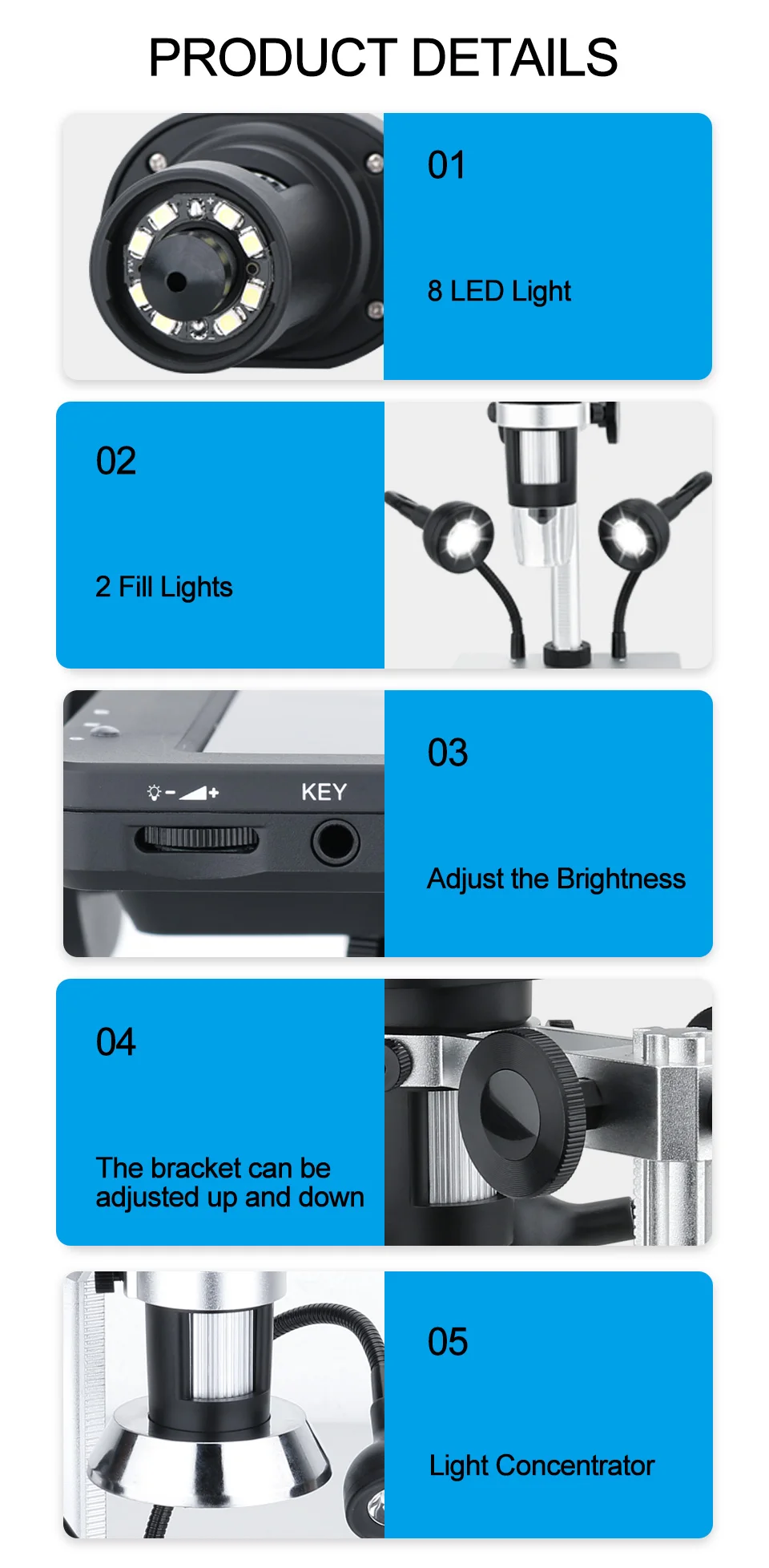 1. Высокой четкости 1000X Цифровые микроскопы с 4,3 дюймов сенсорный экран