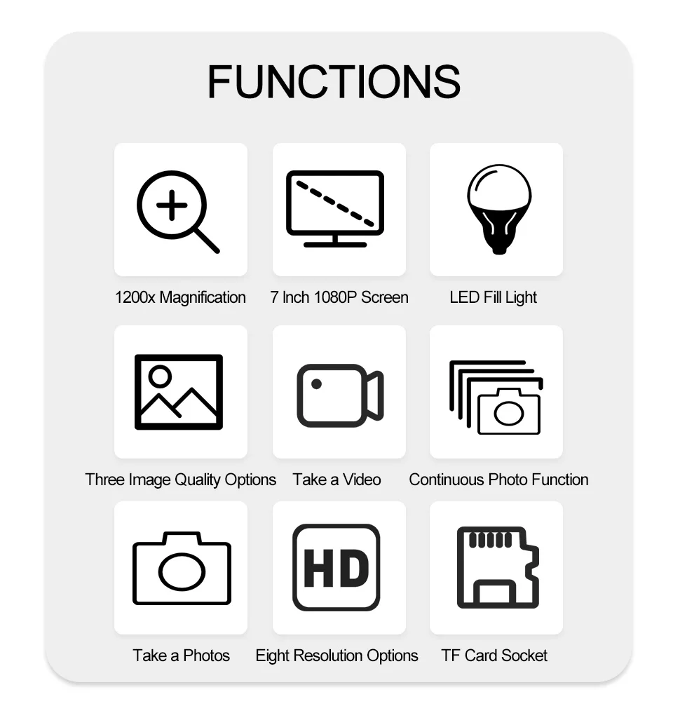 1. Высокой четкости 1200X Цифровые микроскопы с 7 дюймовым экраном