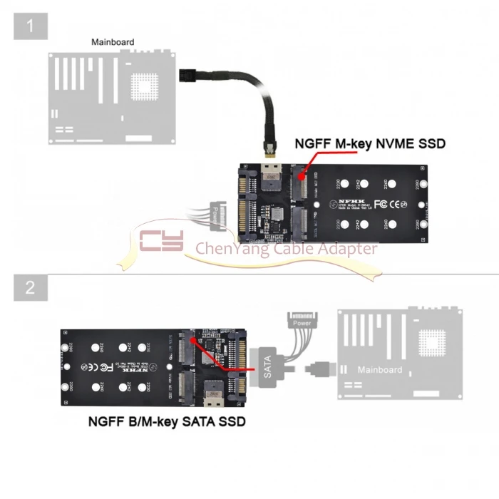 2. Один M.2 SATA SSD в 2280, 2260, 2242 и 2230 формат может быть подключено, а также используется в качестве замены 2,5 ″ для жесткого диска. Конвертер может быть установлен внутри системы через интерфейс SATA 22pin.