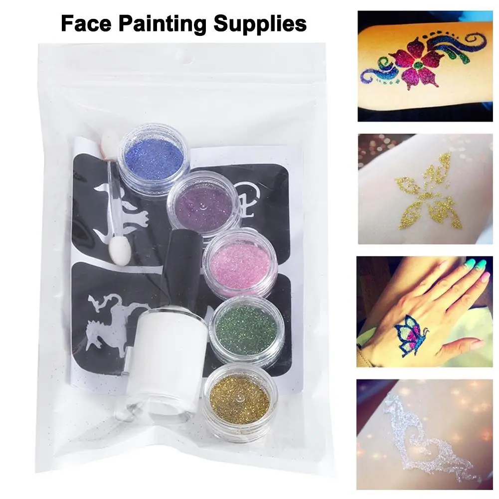 5Pcs Color Set Flash Diamond Glitter Flash Powder for Temporary Tattoo Set Kids Face Body Painting Art Tools Suit 27P