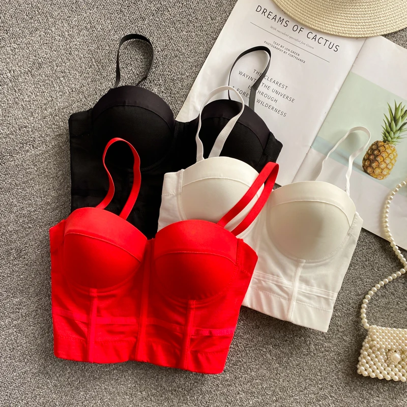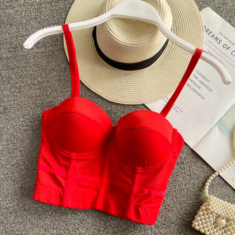 Sexy fashion cropped top, simple and fashion, push up design, it is very comfortable. It easy match any style of bottoms, suitable for night club and special occasion wear. Sexy and fashion look, a good choice for you!Made of spandex material. Push up design, delicate workmanship, silica inside.Back with 5 or 8 Rows of Hook and Eye Closure,Superior in material and excellent in workmanship, with a delicate shape, this is a must have for every women! Adjustable and removable straps, Push up design, Slim fit for body, these will never become old-fashioned.Worth to wear !