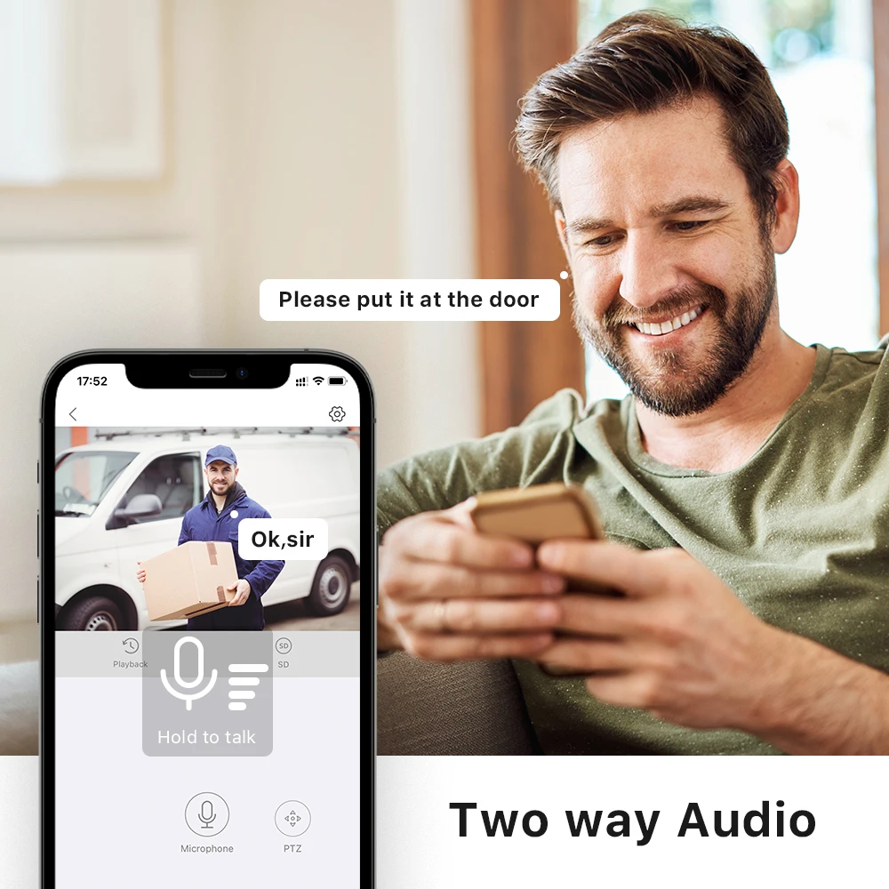 Встроенный высококачественный микрофон и динамик, нажмите кнопку внутренней связи на мобильном приложении, вы можете легко общаться с семьей.