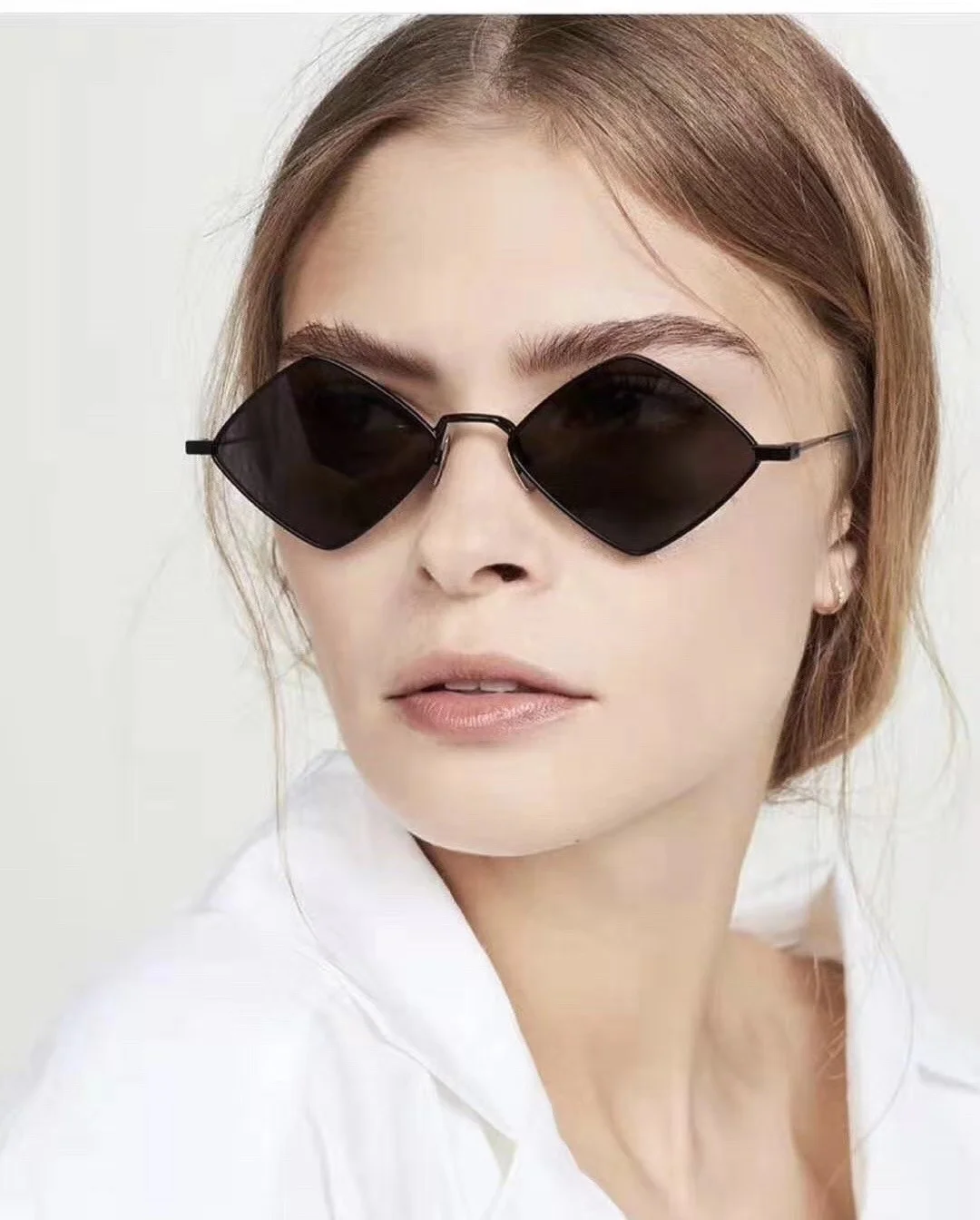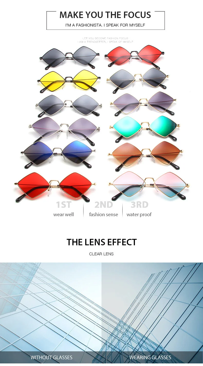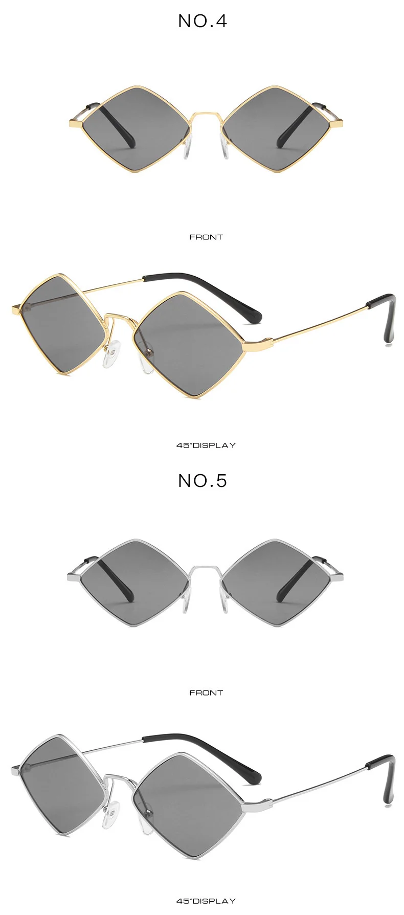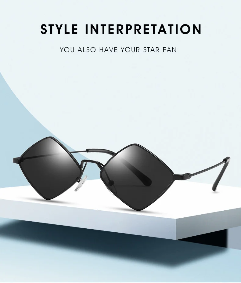 Vintage Chic Rhombus Mini Sunglasss For Women 2021 New Brand Alloy Small Mirror Sun Glasses Men Irregular Shades Oculos Feminino