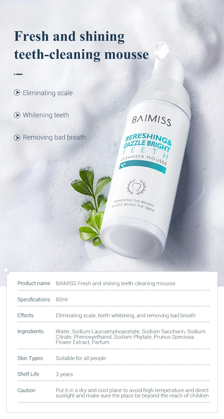Название продукта: свежий и сияющий мусс для чистки зубов BAIMISS