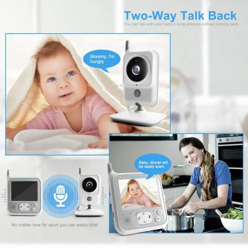 3,2 дюймов ЖК-дисплей видео радионяня Беспроводной няня двухстороннее аудио ночной Светильник Температура домашних животных Детские Камера няня Колыбельная VB607