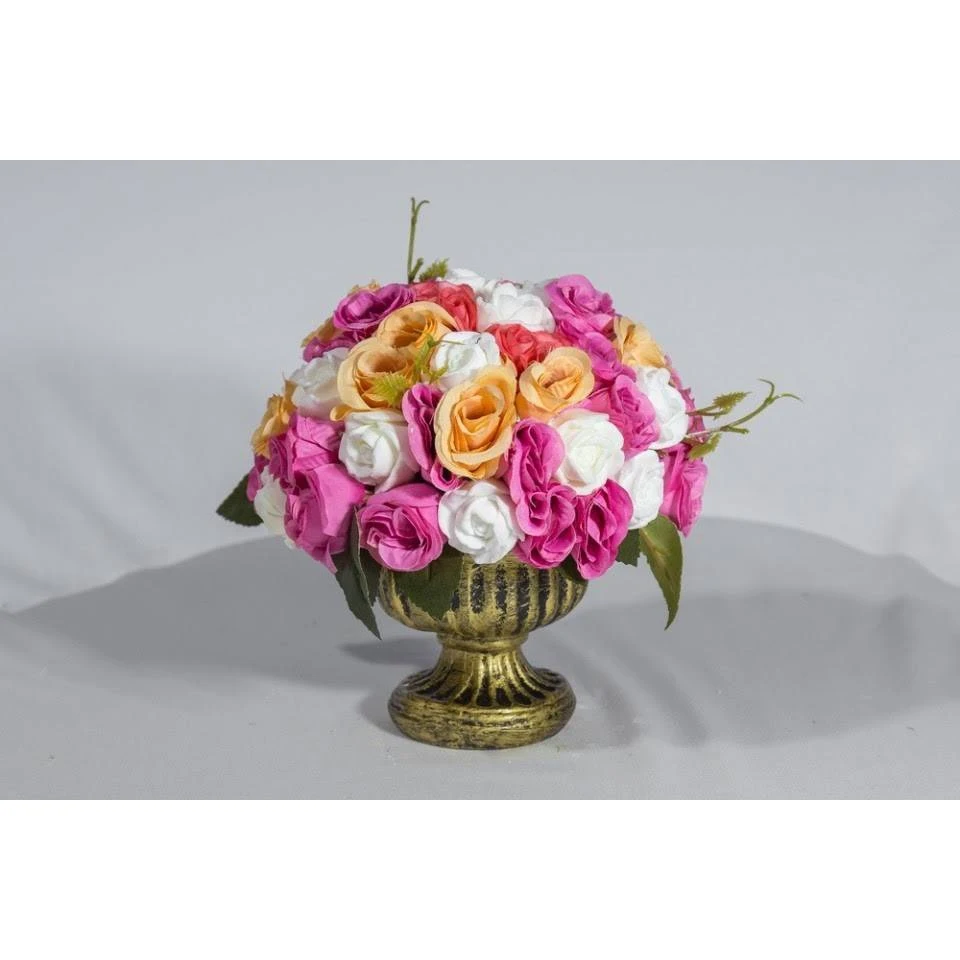 Композиция выполнена в виде вазы-кубка, наполненного розовыми и белыми цветами.