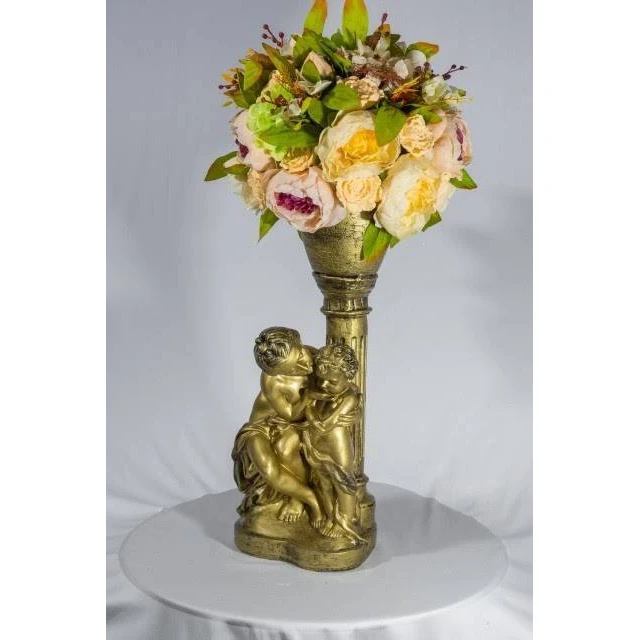 Композиция выполнена в виде девушки золотого цвета, стоящей рядом цветами.