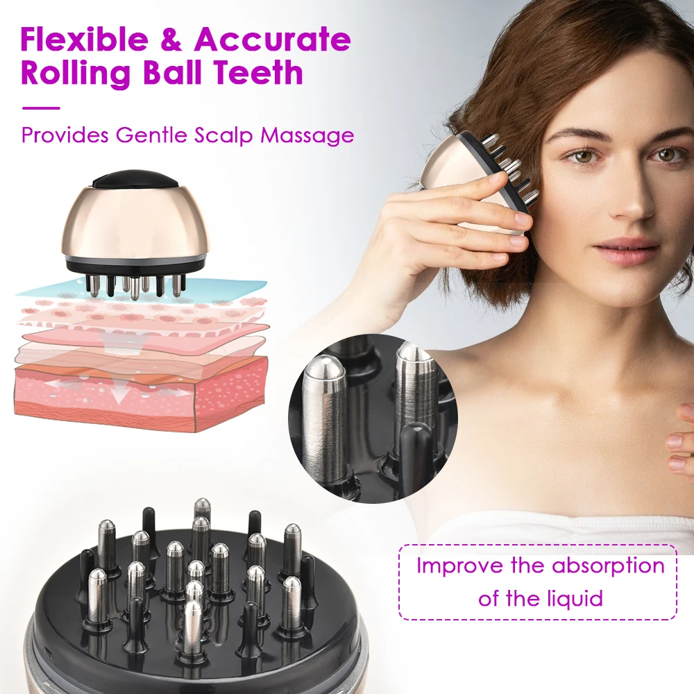 1. Гибкие и точные зубья шариков позволяют тщательно регулировать мазок с гладкой жидкостью, равномерно протекающей на корнях волос, а также мягко массировать кожу головы для ускоренного впитывания жидкости.