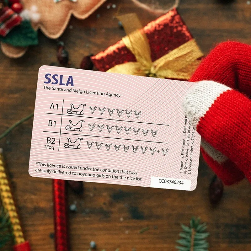 Особенности: поддельные пластиковые карты Санта-Клаус Летающий Лицензия Рождество в канун водительское удостоверение стиль рождественский подарок