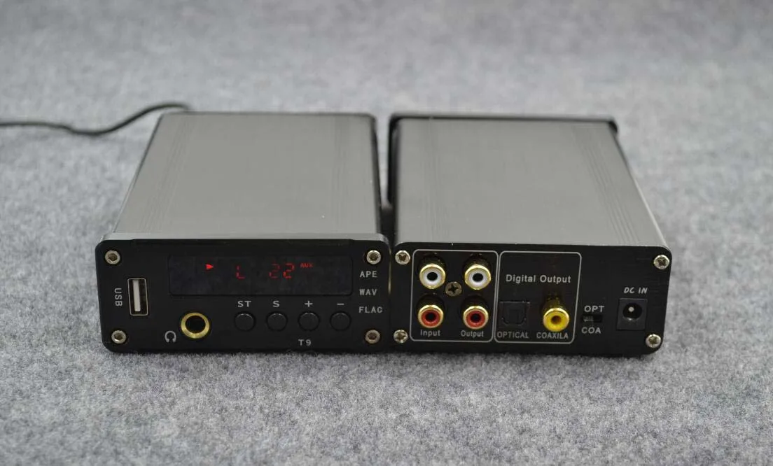 Выход T9: выход цифрового оптического волокна, выход цифрового коаксиального сигнала, выход аналогового сигнала RCA, выход усилителя.