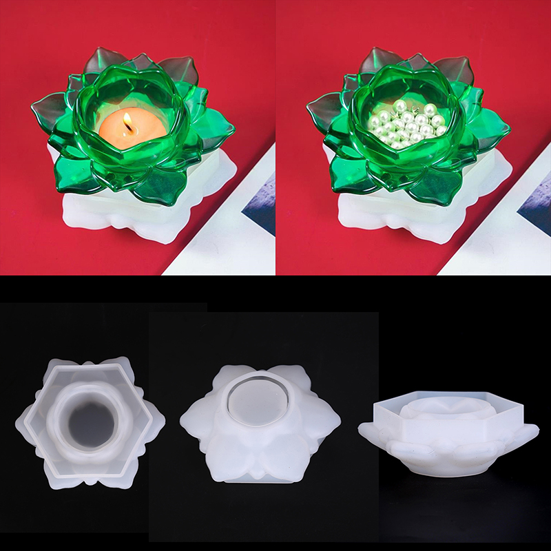 DIY Storage Box Crystal Epoxy Resin Mold 3D Lotus Candle Holder Silicone Mould
