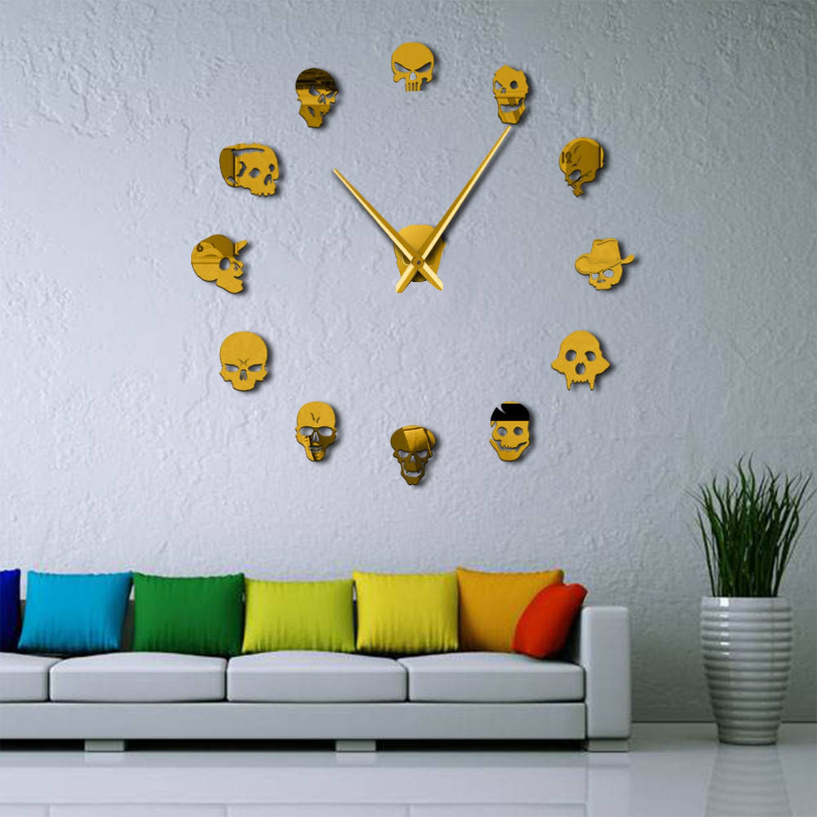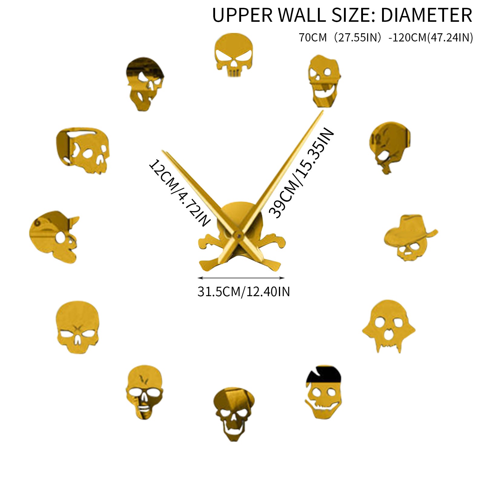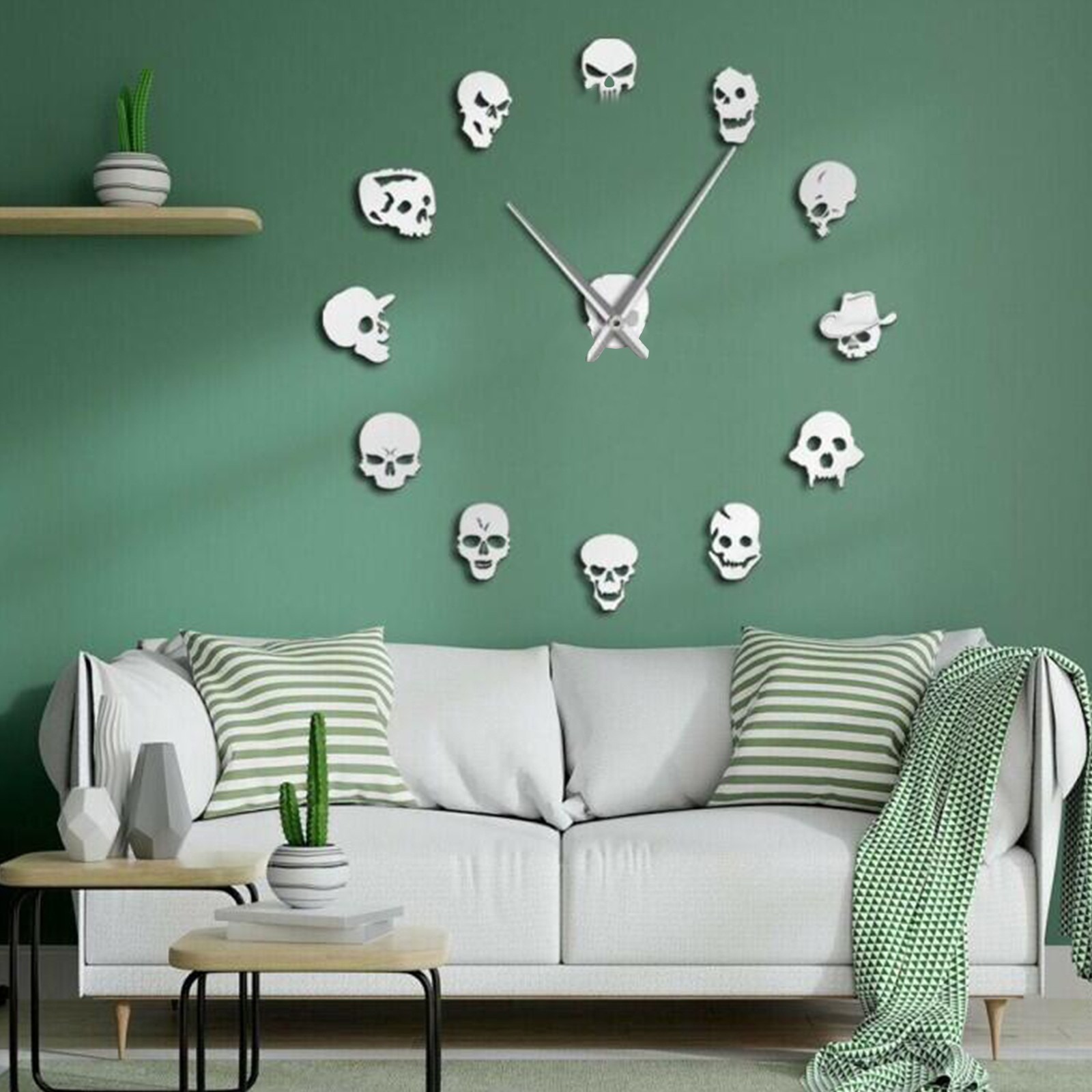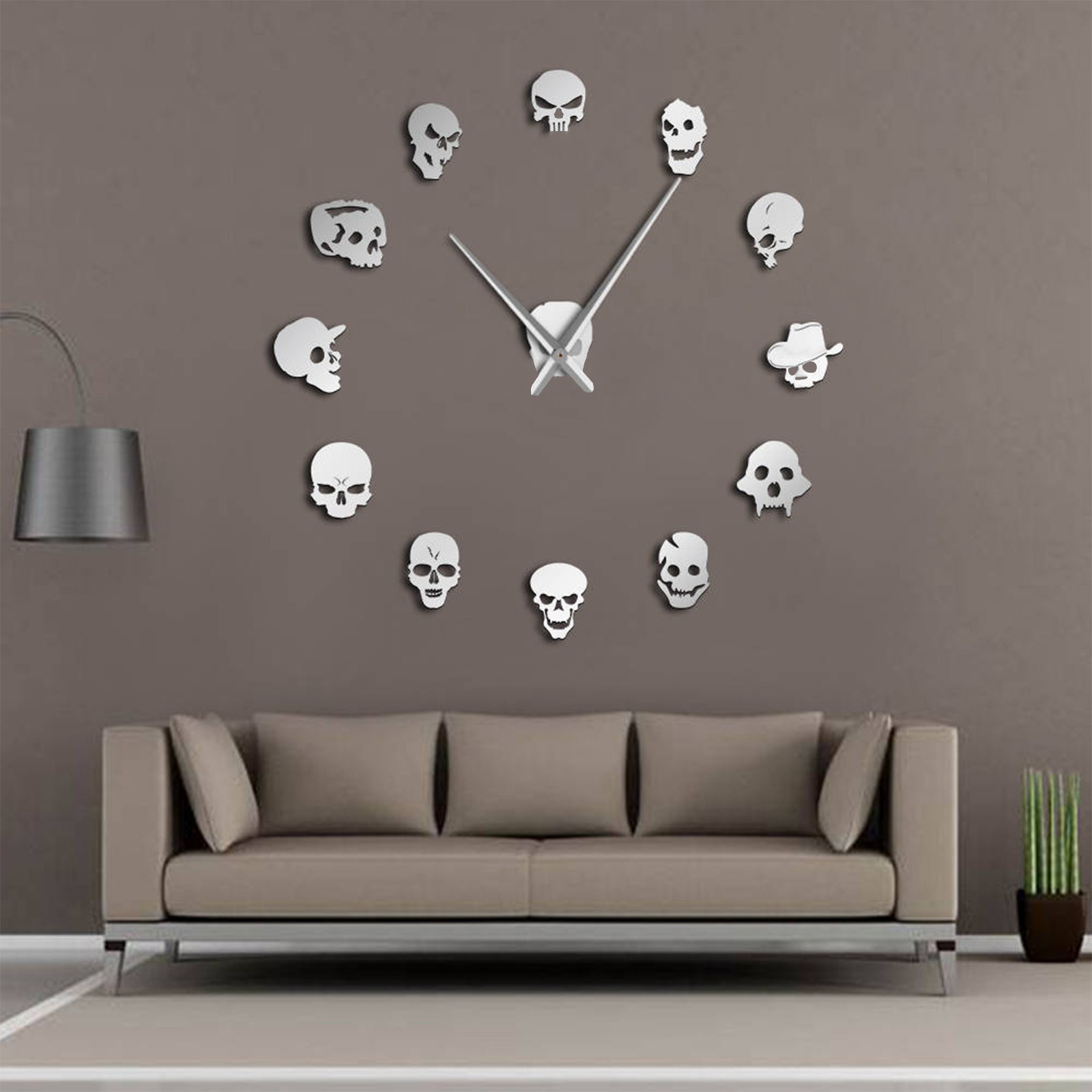 Хэллоуин Большой DIY Череп настенные часы с зеркалом эффект украшения дома