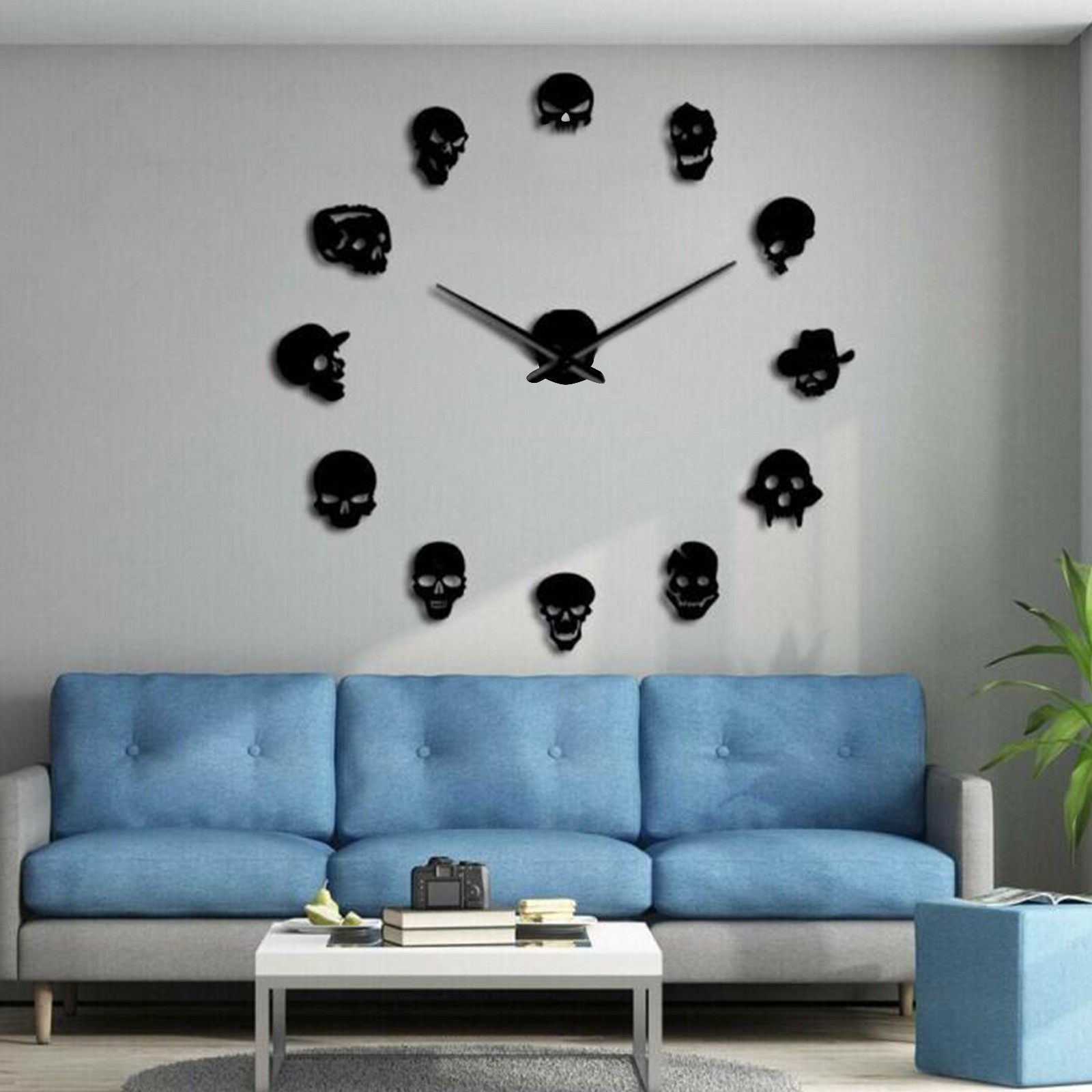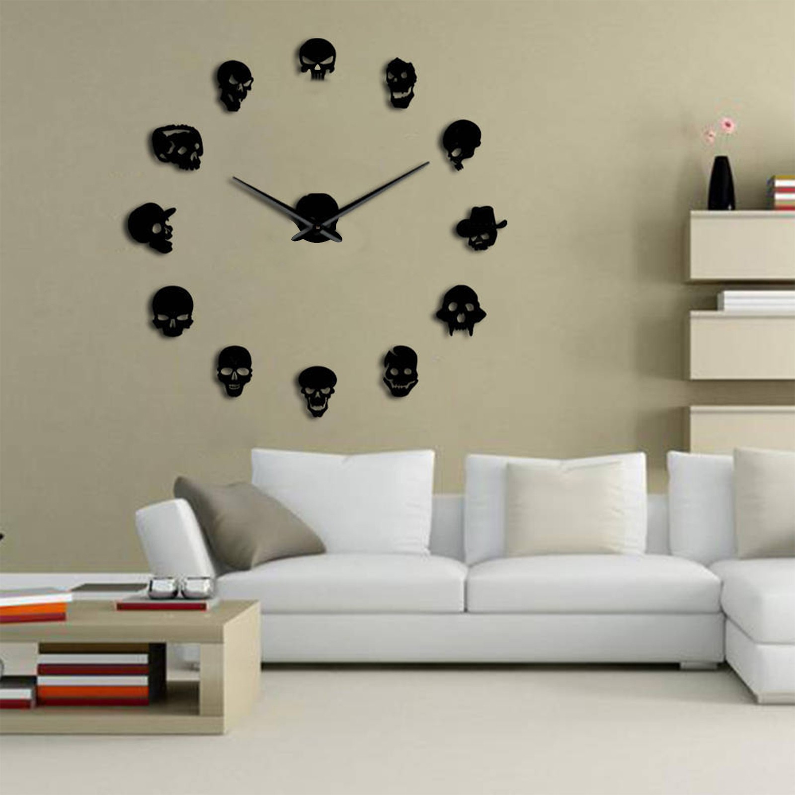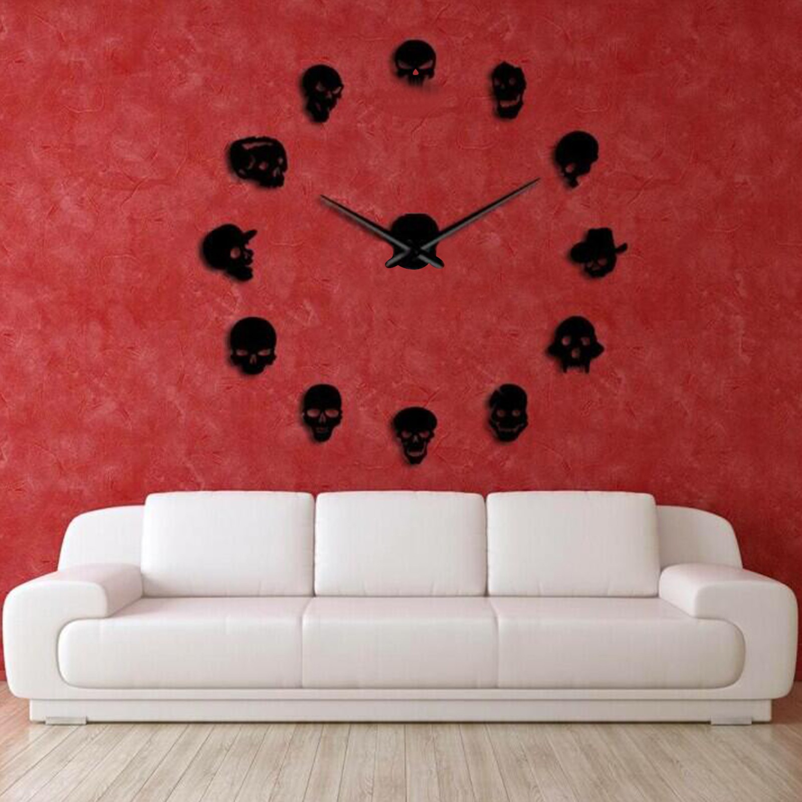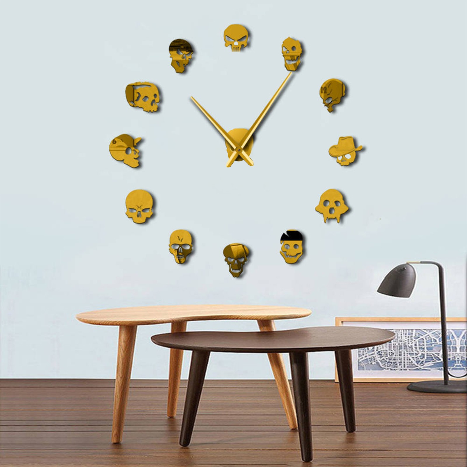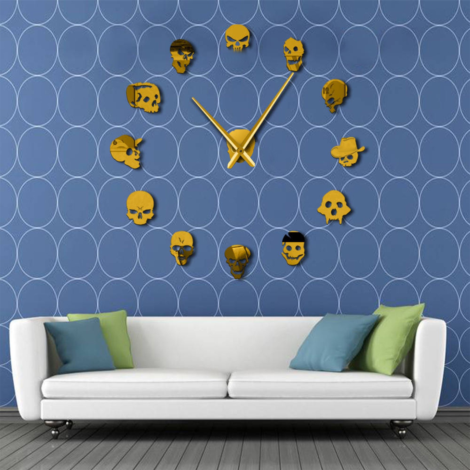 Хэллоуин Большой DIY Череп настенные часы с зеркалом эффект украшения дома