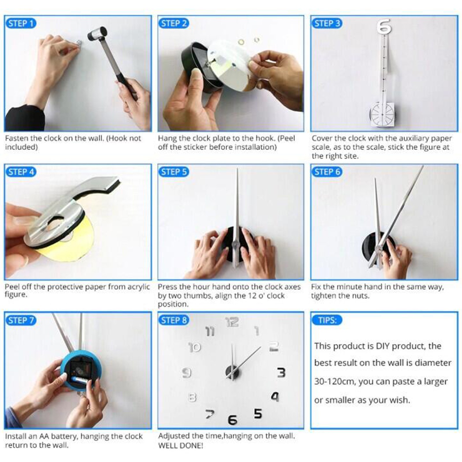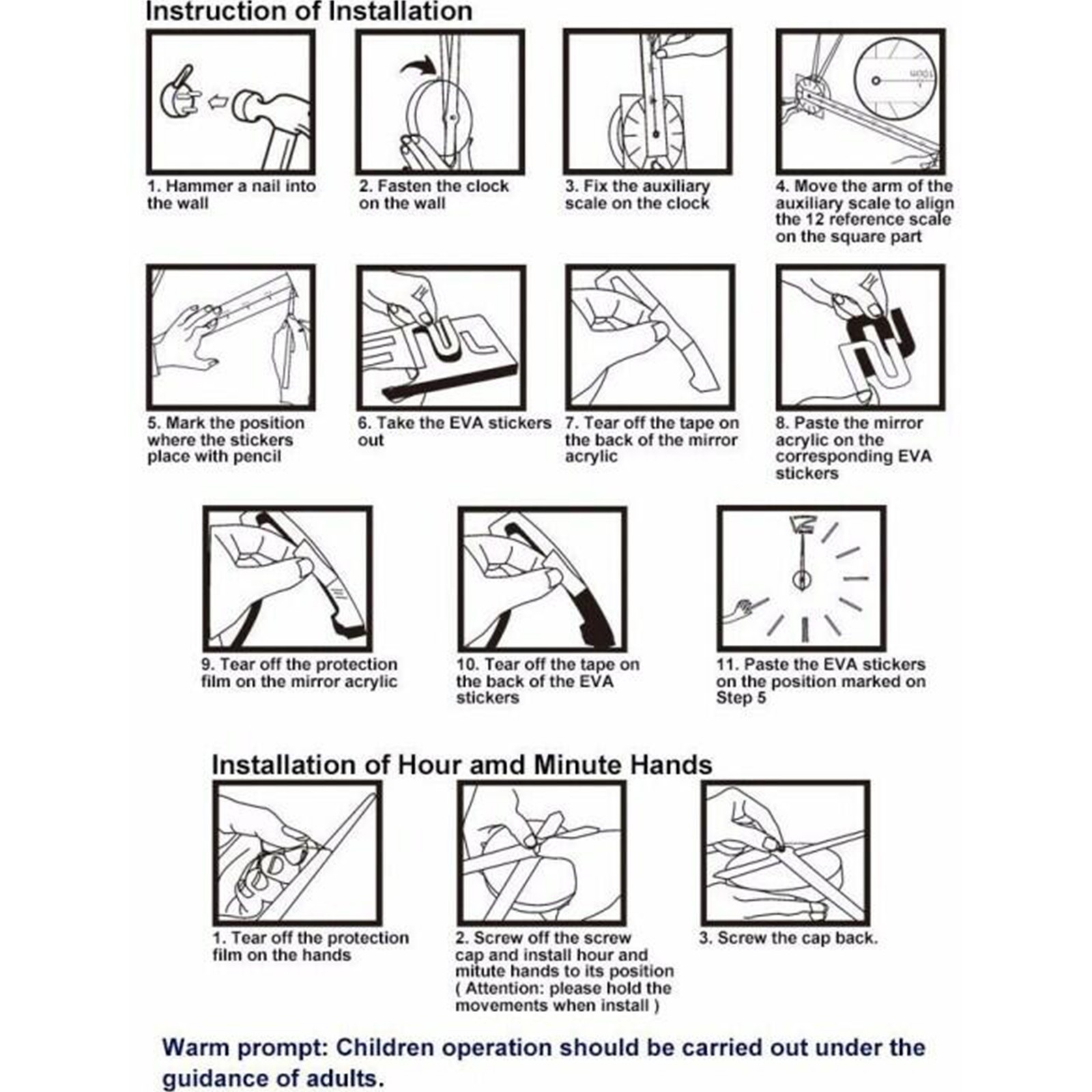 Регулируемый Размер: с Бескаркасной конструкцией, вы можете легко расширить или уменьшить диаметр часов, чтобы соответствовать различным размерам стен. Каждое зеркало имеет защитную пленку, пожалуйста, оторвите ее после установки.