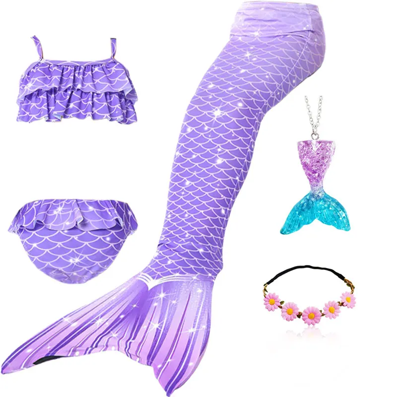 Упаковка 1: 1 * хвост русалки + 1 * бюстгальтер + 1 * шорты + 1 * монофин для плавания + 1 * гирлянда + 1 * ожерелье с русалкой
