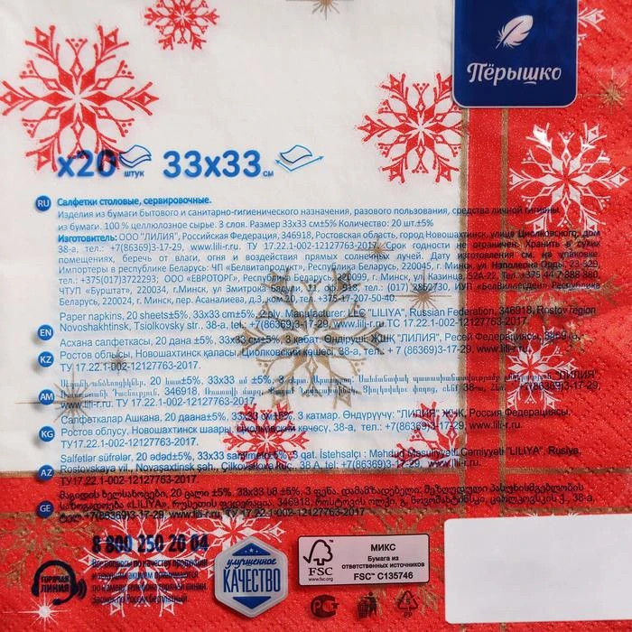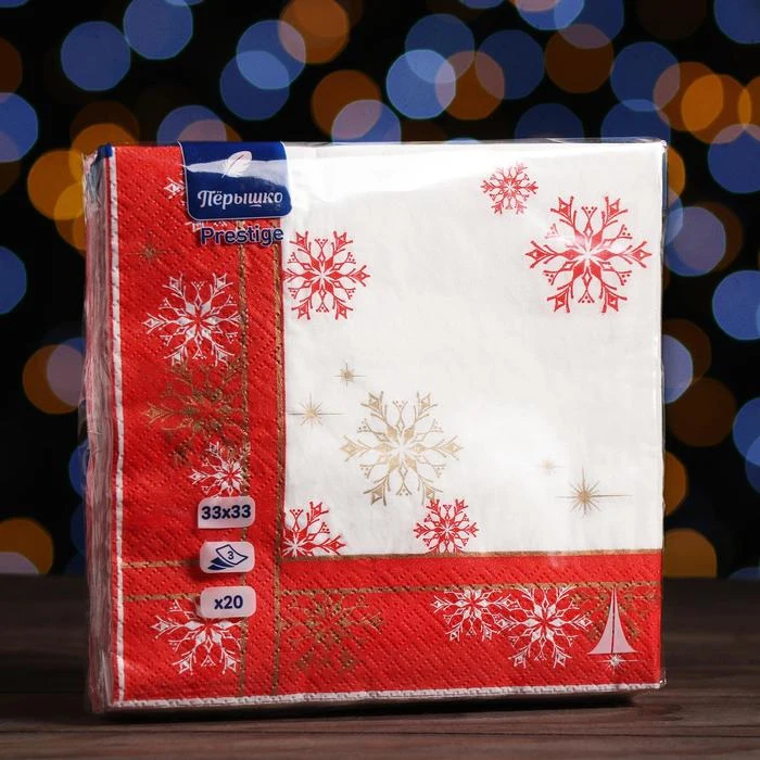Новогодние салфетки бумажные Перышко Prestige 33х33 Торжественная 3 слоя 20 листов 7292805