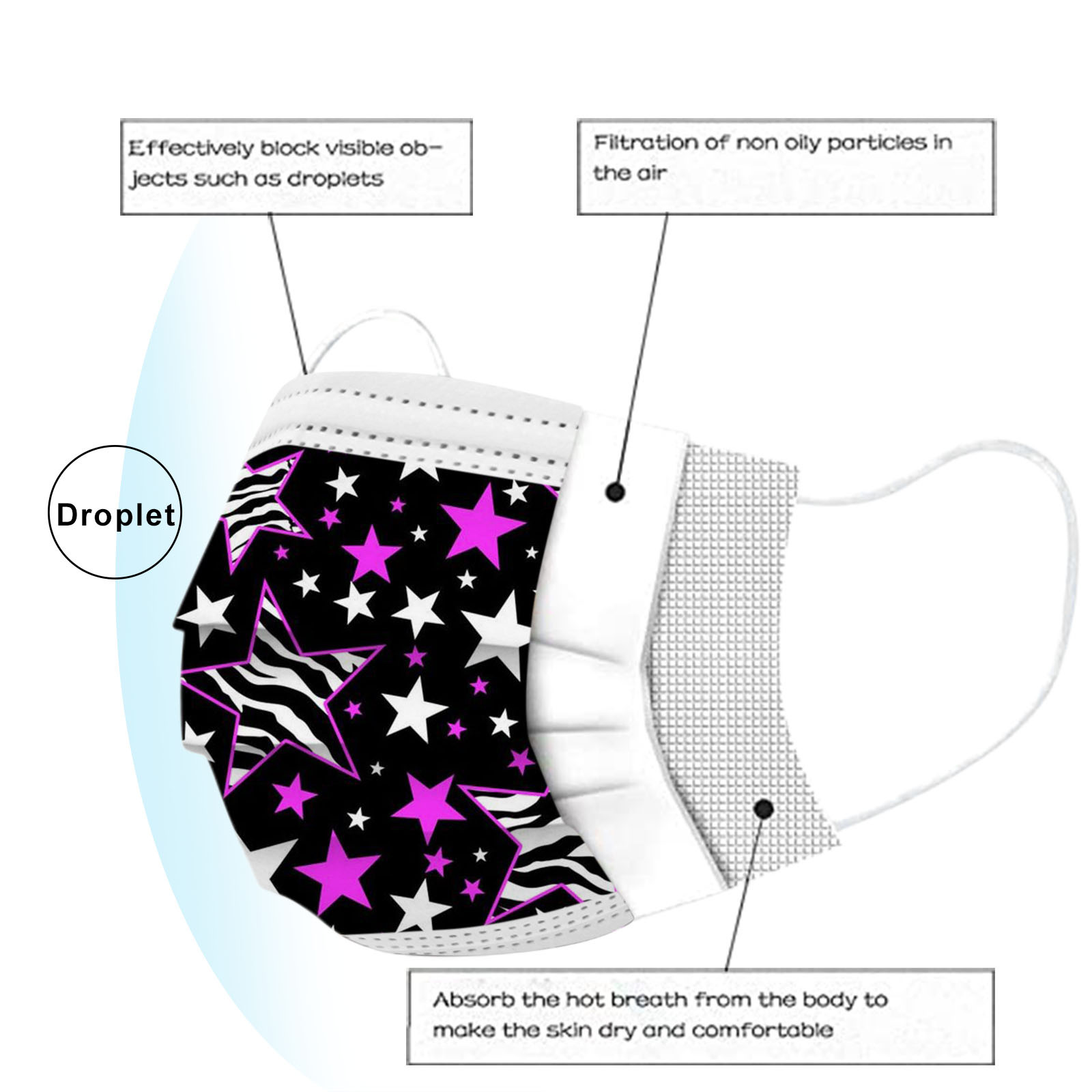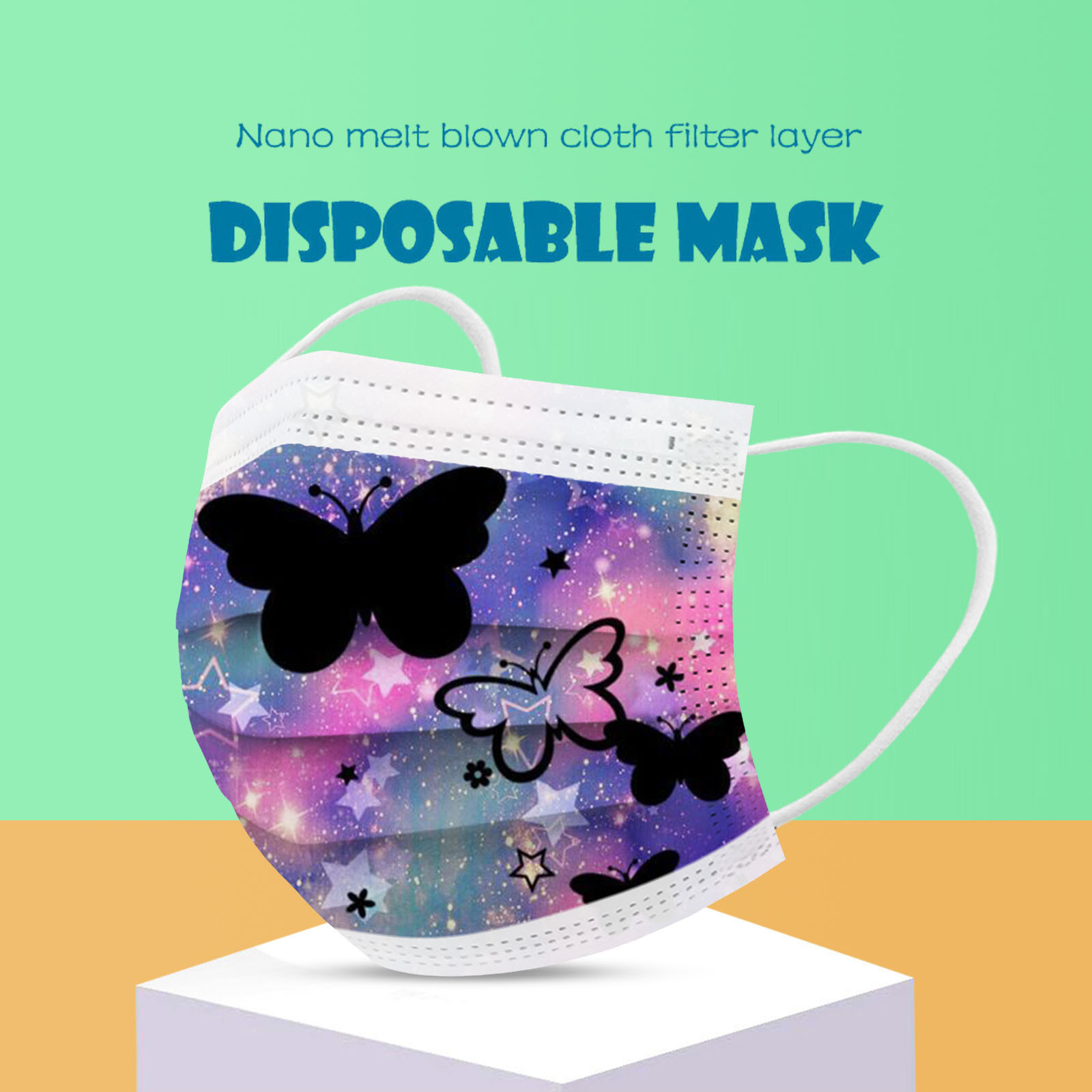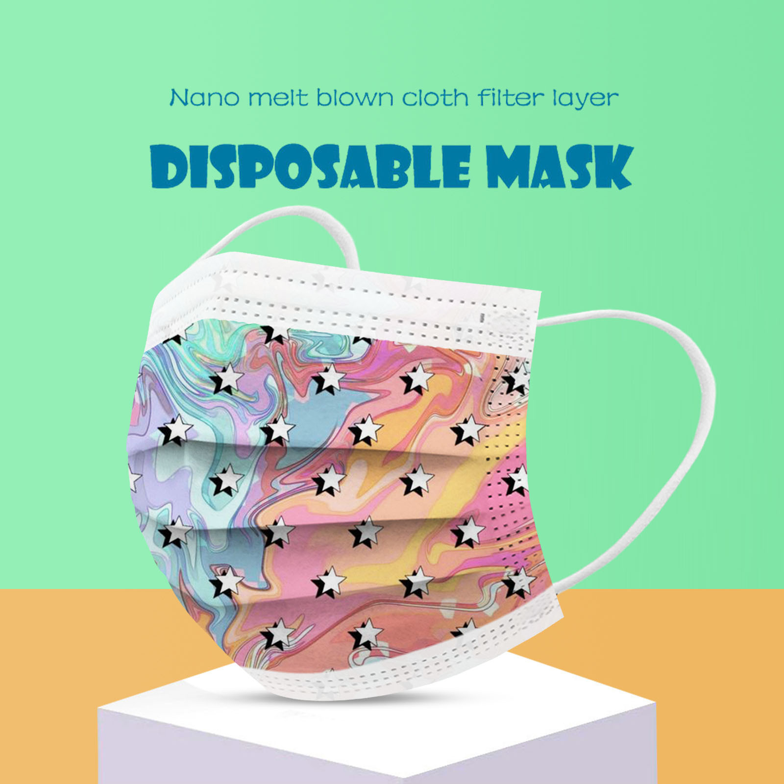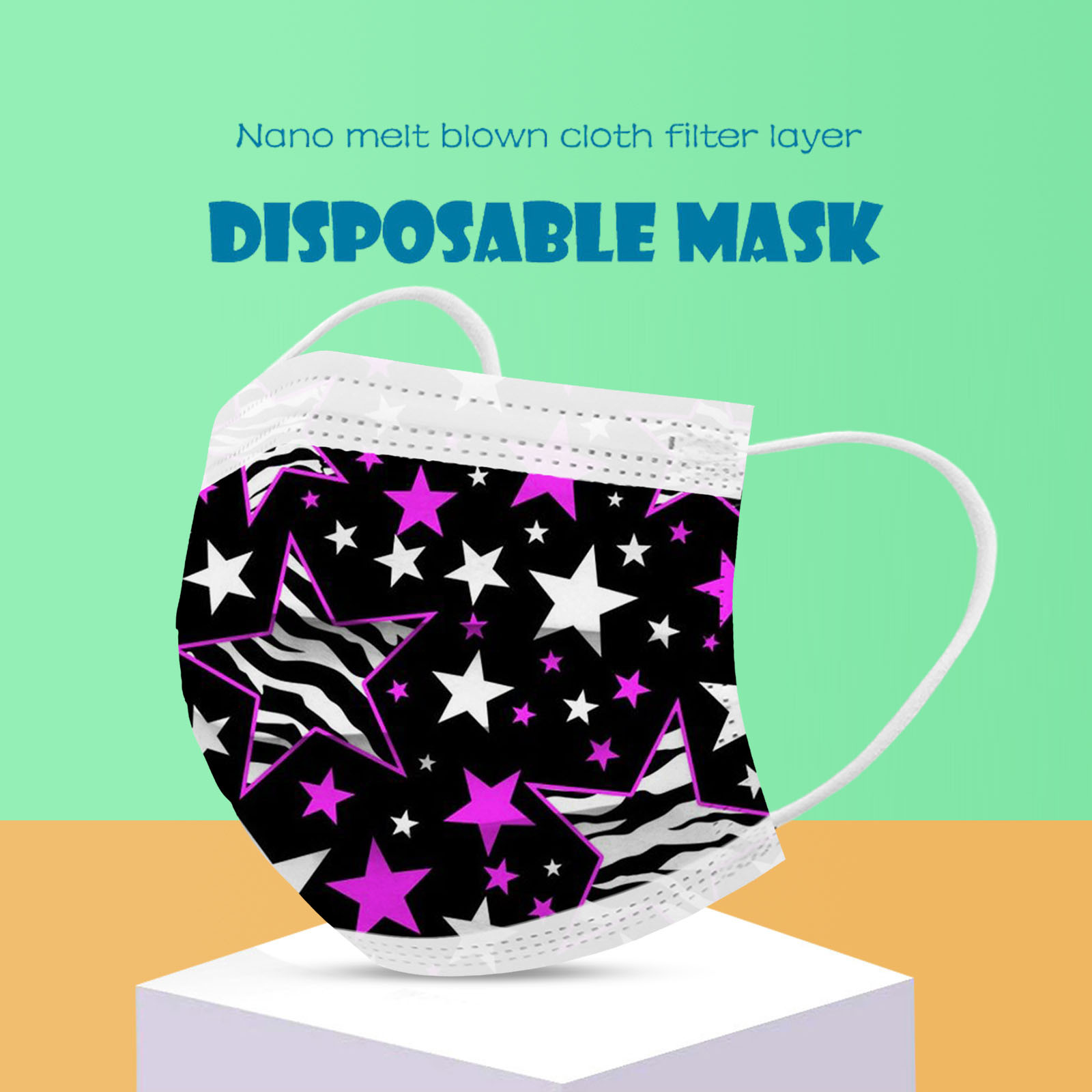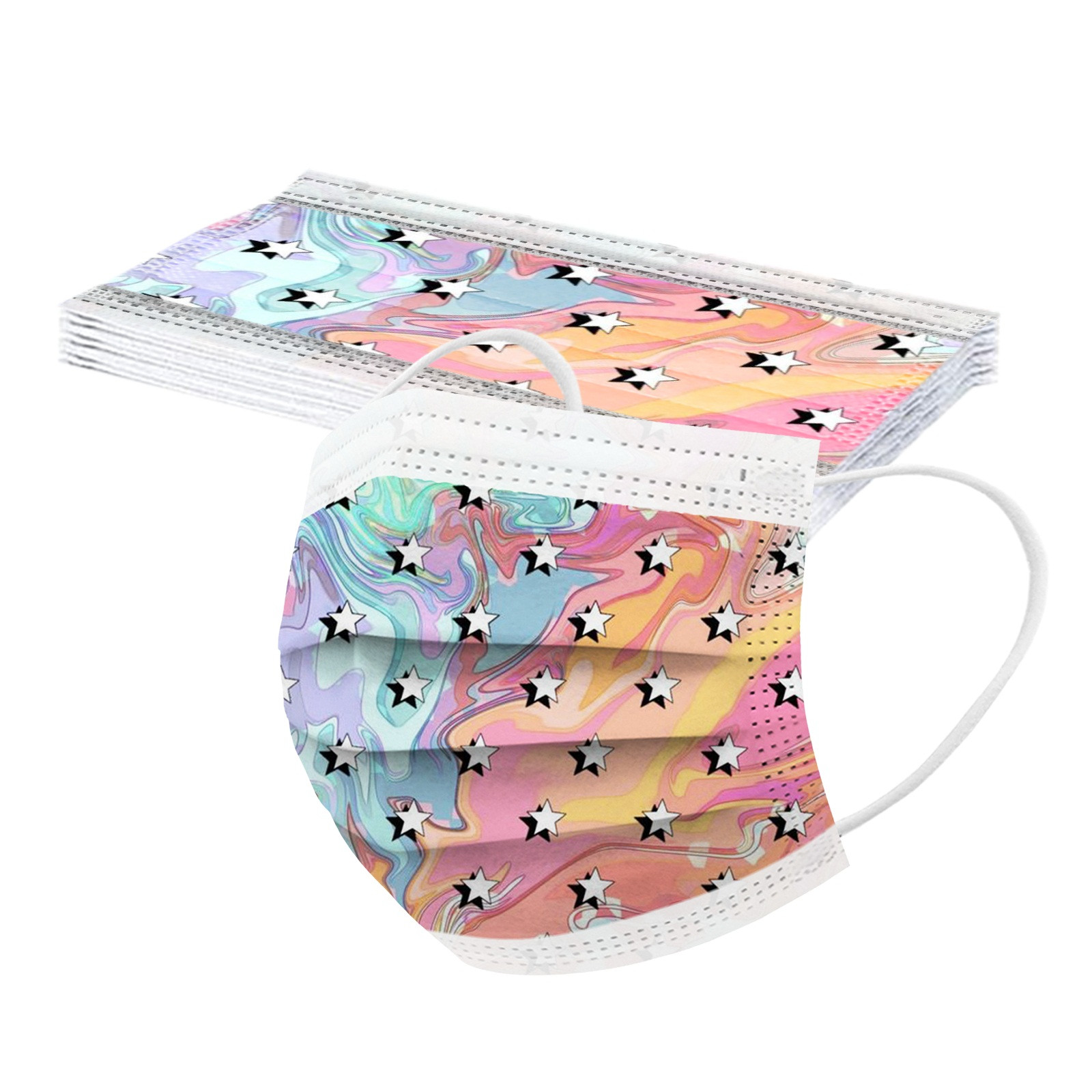 В 3 слоя Нетканая одноразовая маска изготовлена из 3 слоев нетканого материала, Безопасен и безопасен для использования. Дышащий материал и милый Узоры, которые делают его полезным и модным. Специальный 3 слоя из нетканого материала Дизайн, обеспечивает некоторую защиту от пыли, автомобильных выхлопных газов, Пыльца и т. д. эластичная Ушная петля, легко носить и не давит на уши. Маникюрный салон или любые другие области, где может потребоваться защита