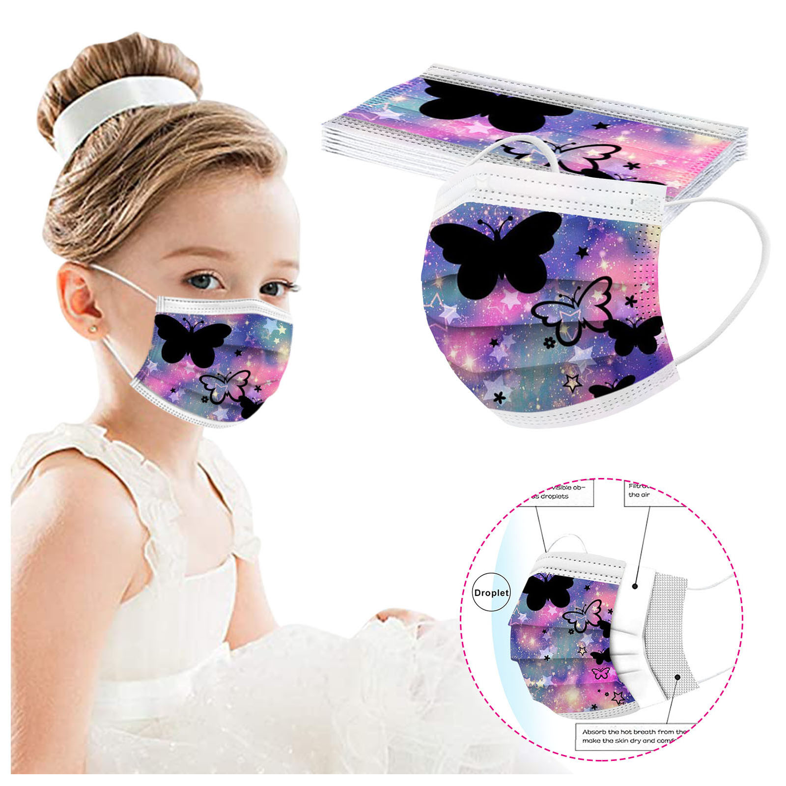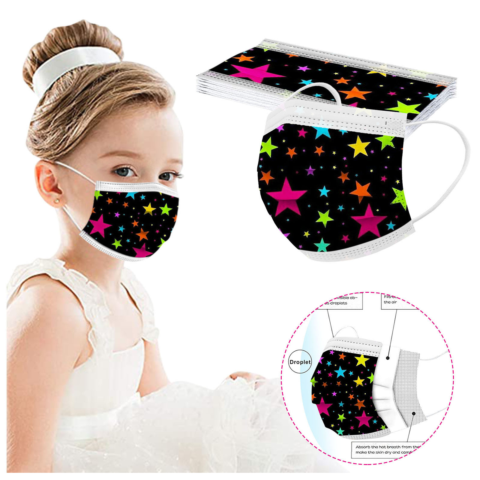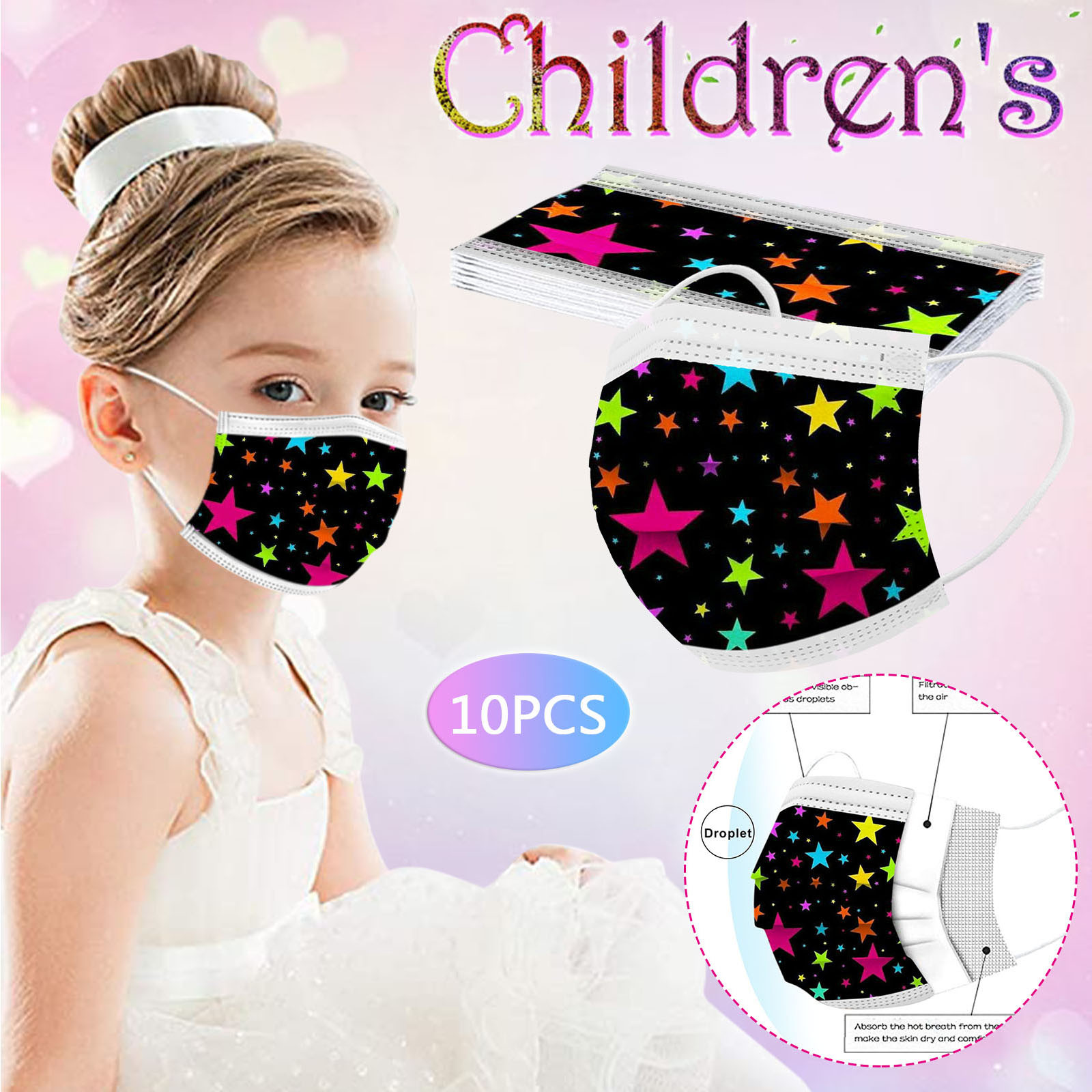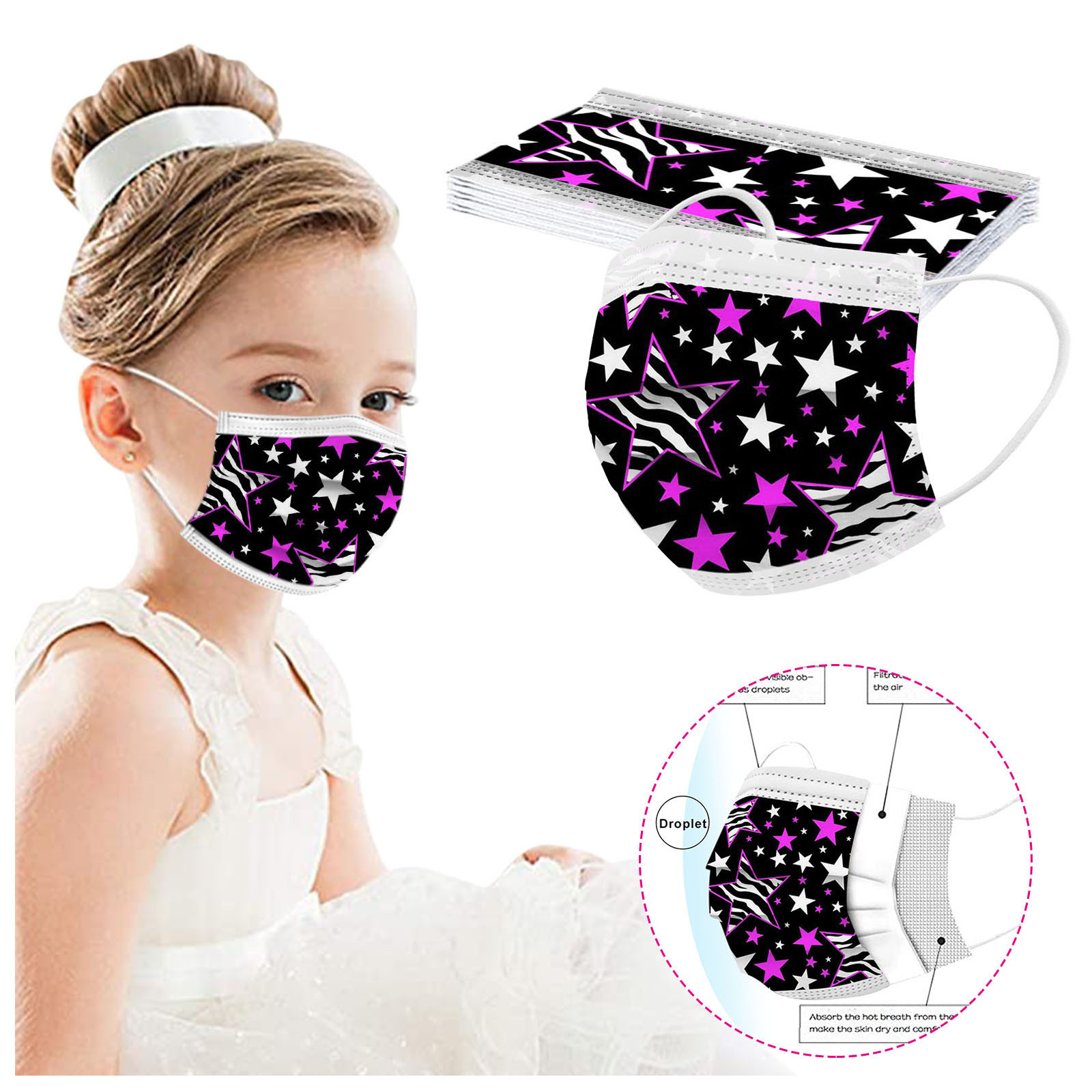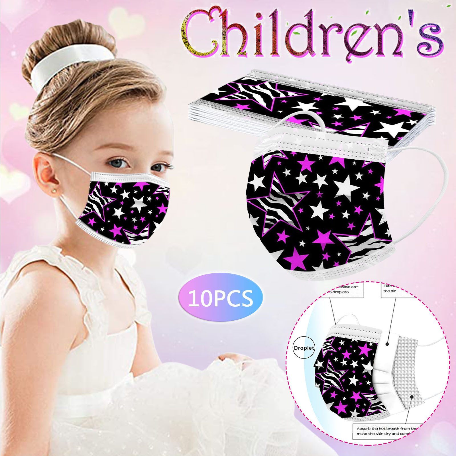 В 3 слоя Нетканая одноразовая маска изготовлена из 3 слоев нетканого материала, Безопасен и безопасен для использования. Дышащий материал и милый Узоры, которые делают его полезным и модным. Специальный 3 слоя из нетканого материала Дизайн, обеспечивает некоторую защиту от пыли, автомобильных выхлопных газов, Пыльца и т. д. эластичная Ушная петля, легко носить и не давит на уши. Маникюрный салон или любые другие области, где может потребоваться защита