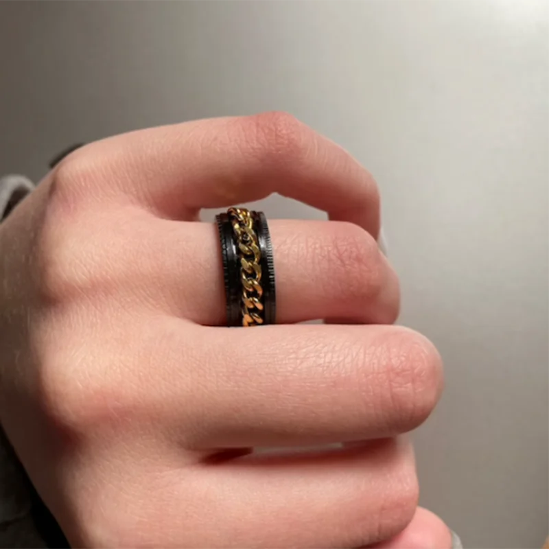 8 мм черная стальная вертушка кольцо для мужчин и женщин 316L нержавеющая вращающаяся цепочка уличная хип-хоп спиннинг Fidget 6-11size
