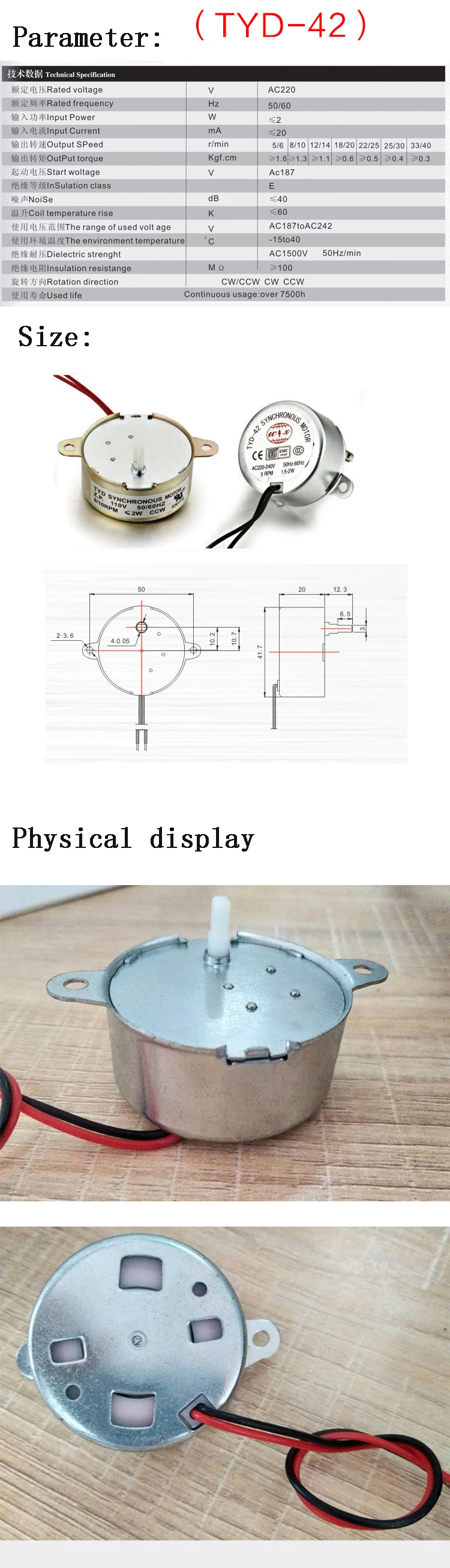1 x AC 220V с синхронным электродвигателем