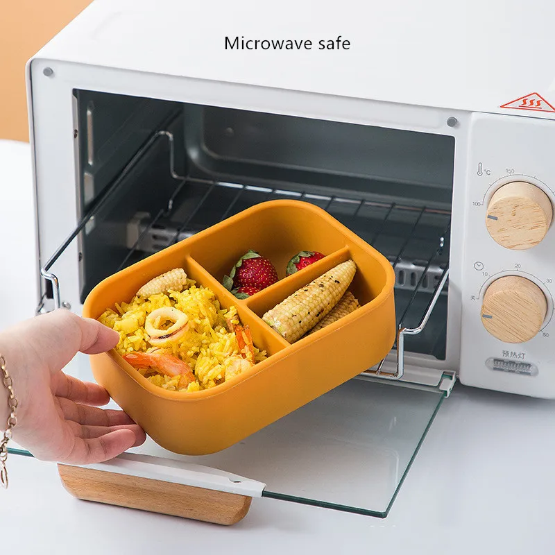 3 перегородки Портативный Силиконовый Ланч-бокс 920 мл ланч-Бенто-бокс для микроволновой печи контейнер для хранения еды