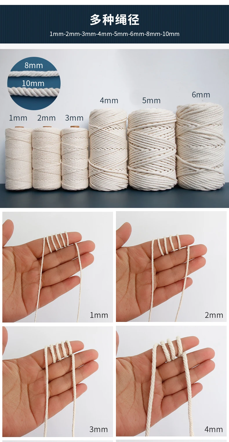 Название продукта: 3 мм 4 мм 5 мм 6 мм веревка макраме натуральный бежевый хлопковый шнур витая веревка для рукоделия ручной работы украшения дома свадебные аксессуары