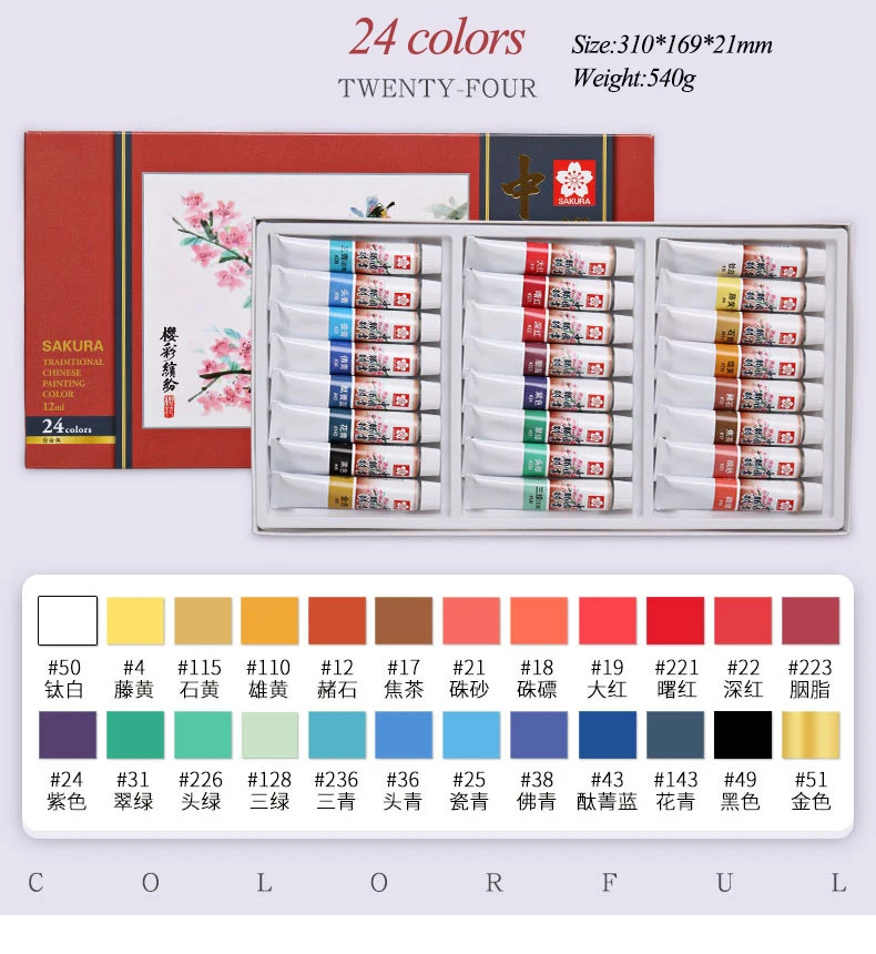 Мы принимаем все заказы на прямую доставку и оптовые заказы, и мы не будем класть информацию на посылки. Пожалуйста, не стесняйтесь обращаться к нам, если у вас есть какие-либо вопросы.SAKURA 12/18/24 цвета в китайском стиле красящие пигменты набор Инструменты для рисования для художников-арт для бизнес планирования школьные принадлежности канцелярские товары