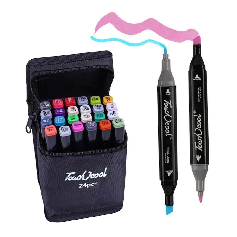 Маркеры подходят для самых требовательных художников, иллюстраторов, дизайнеров и любителей скетчинга. Приятный на ощупь эргономический корпус позволяет держать контроль при рисовании точных и сложных скетчей.Два пера удобны для комбинированной работы: тонкое для проработки деталей и широкое плоское – для закрашивания больших фрагментов.Чернила на спиртовой основе нетоксичны и не портят поверхность бумаги в отличие от маркеров на водной основе.Скетчи данными маркерами быстро высыхают на бумаге и становятся водостойкими, бескислотными. Маркеры подходят для использования на бумаге, картоне, фотографиях, ксерокопиях, пластике, дереве, ткани, холсте.