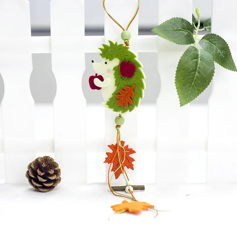 Креативная Рождественская елка, подвесная деревянная подвеска из бисера, декор для детской комнаты, мультяшный фетр, ежик, кленовый лист, украшение для дома, подвеска