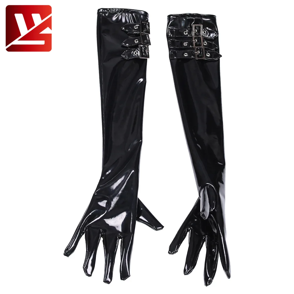Новые Горничные сексуальные кнопки регулируемого размера плюс длинные перчатки Wetlook ПВХ блестящие варежки латексная Перчатка из искусственной кожи Клубная Одежда для танцев на пилоне