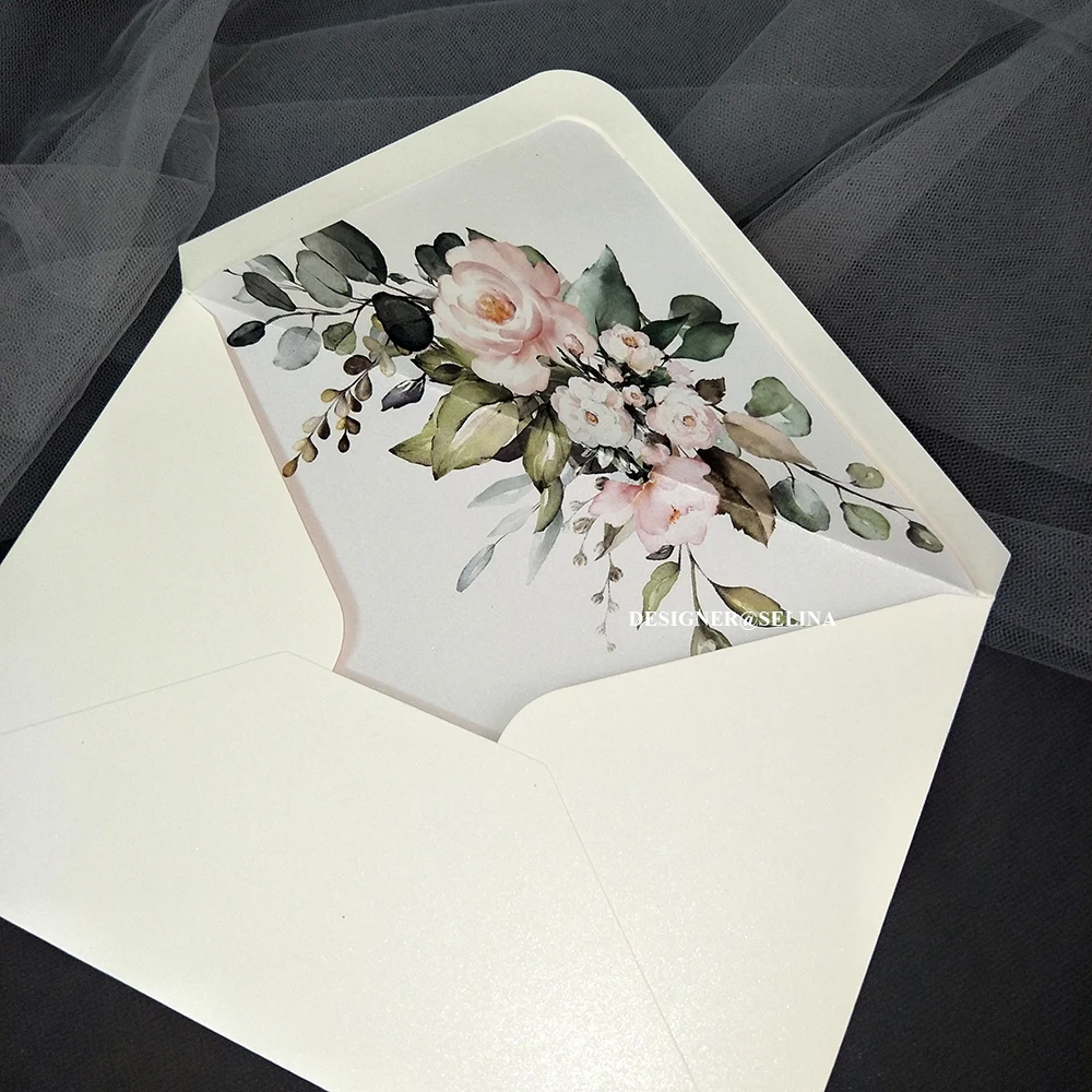 Индивидуальная линия печати:Вы можете выбрать наш цветочный дизайн, цвет конверта. Мы поставляем индивидуальную печать на подкладке