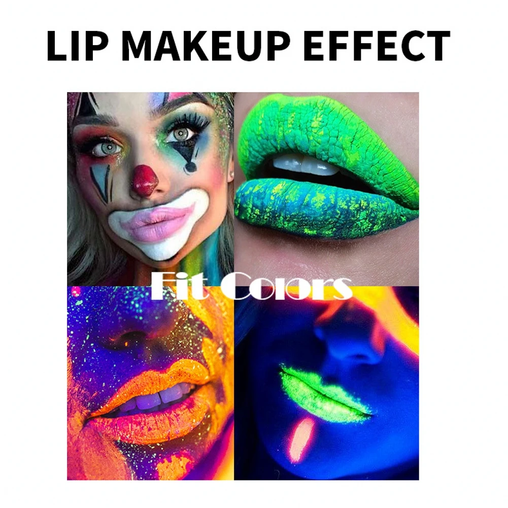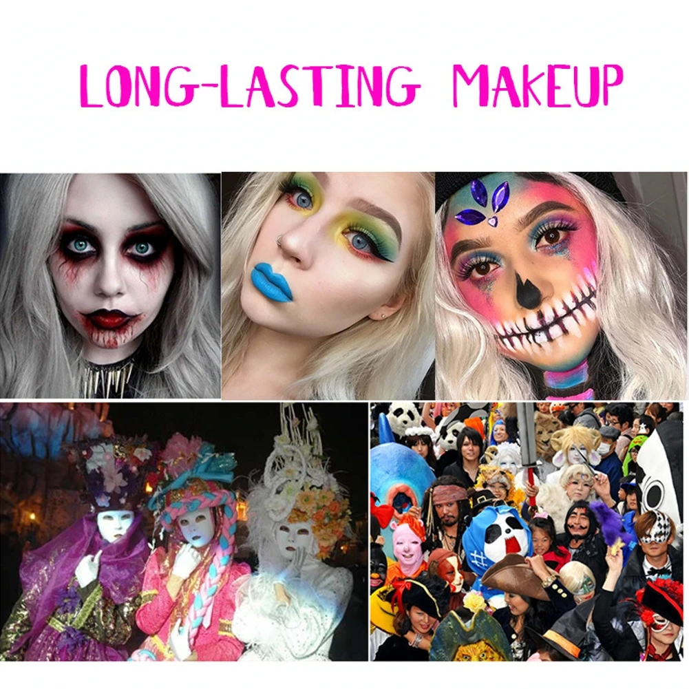 3. Больше вариантов цвета: 12 видов цветов для использования, флуоресцентные цвета, очень подходит для Хэллоуина, карнавала, вечеринок, танцевальных вечеринок и свадебного макияжа и в любом месте с освещением.