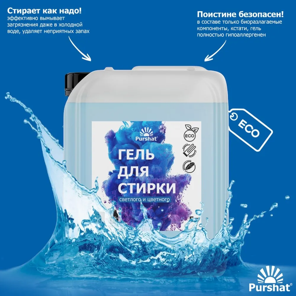 Гель для стирки светлого и цветного белья 200 стирок Пуршат 10 л