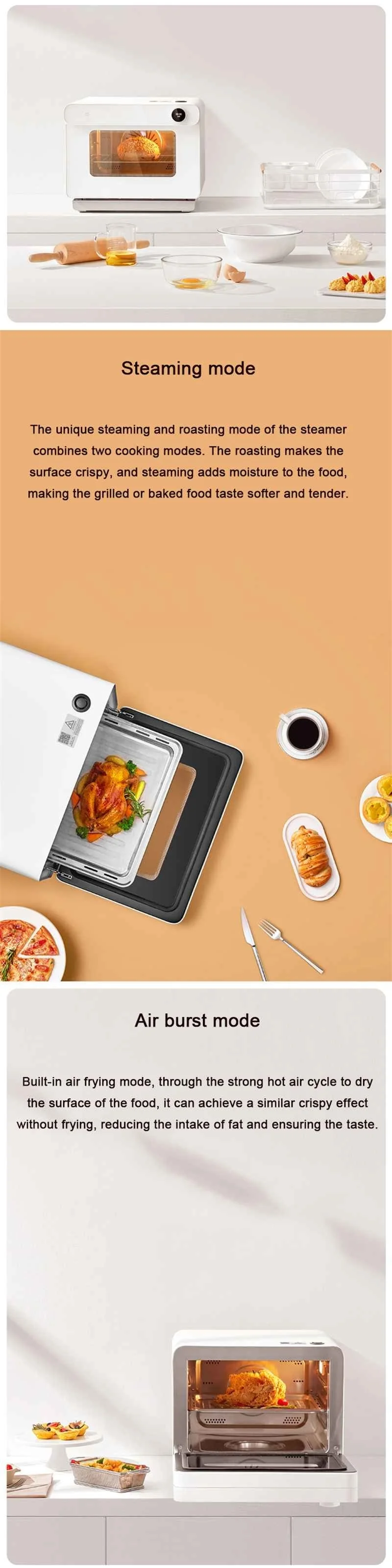 Полностью открывающийся вертикальный корпус, эффективно экономя пространство. Продукт имеет встроенный трехслойный отпариватель и бак для гриля, а также поставляется с высококачественным лотком из нержавеющей стали, паровой поддон, гриль и противень. Он поддерживает трехслойное парение и барбекю. Одна машина имеет несколько функций для удовлетворения пищевых потребностей всей семьи.