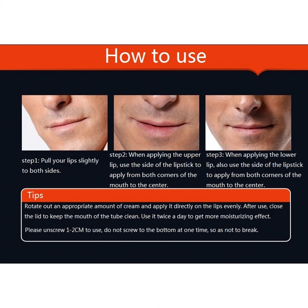 1. Поверните соответствующее количество пасты и равномерно нанесите ее непосредственно на губы.